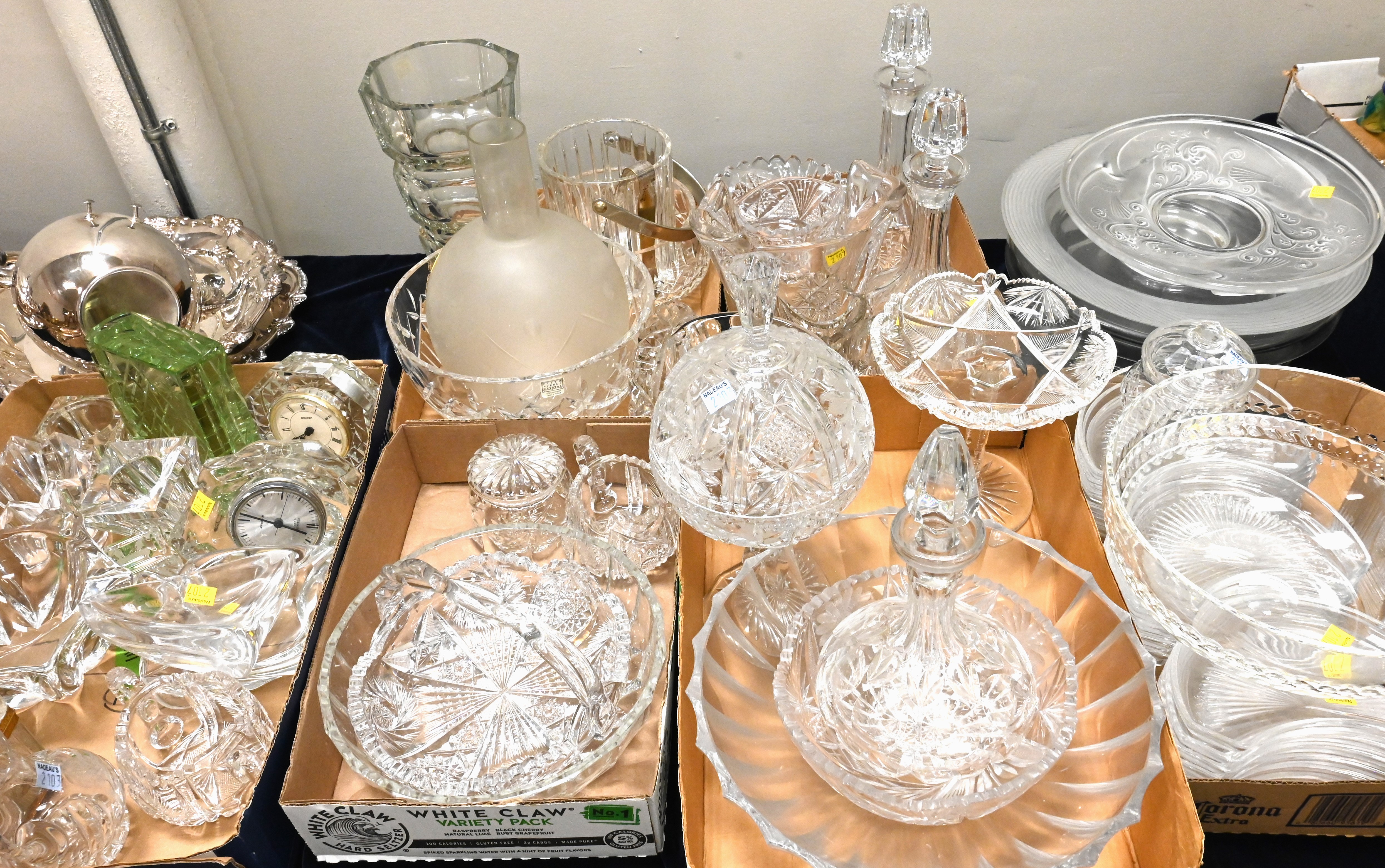 to include etched crystal goblets, six Baccarat brandy snifters, a pair of Tiffany champagne glasses, Val St. Lambert candlesticks, Steuben compote, along with a Tiffany pitcher, etc.. tallest piece height is 9 inches