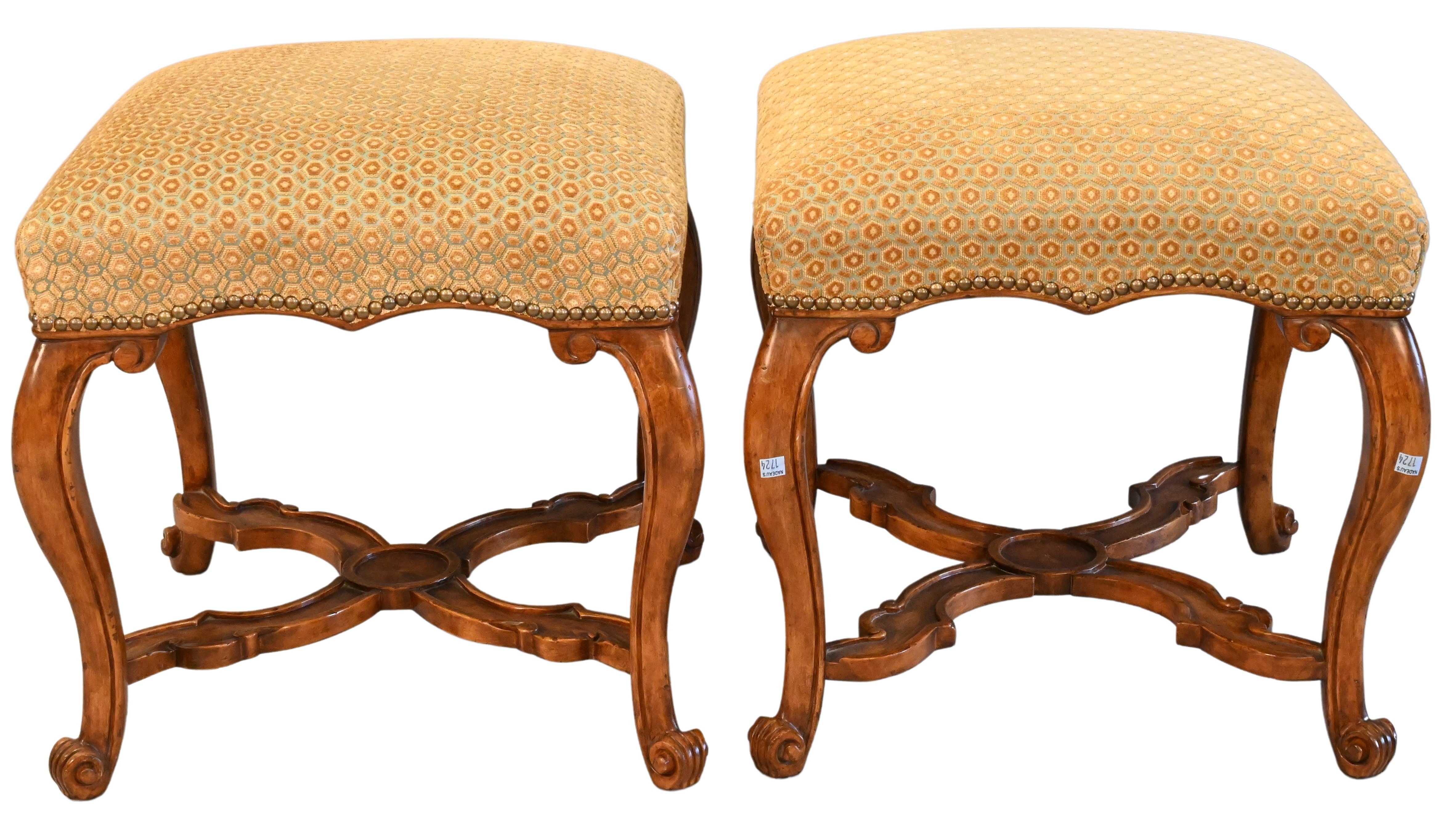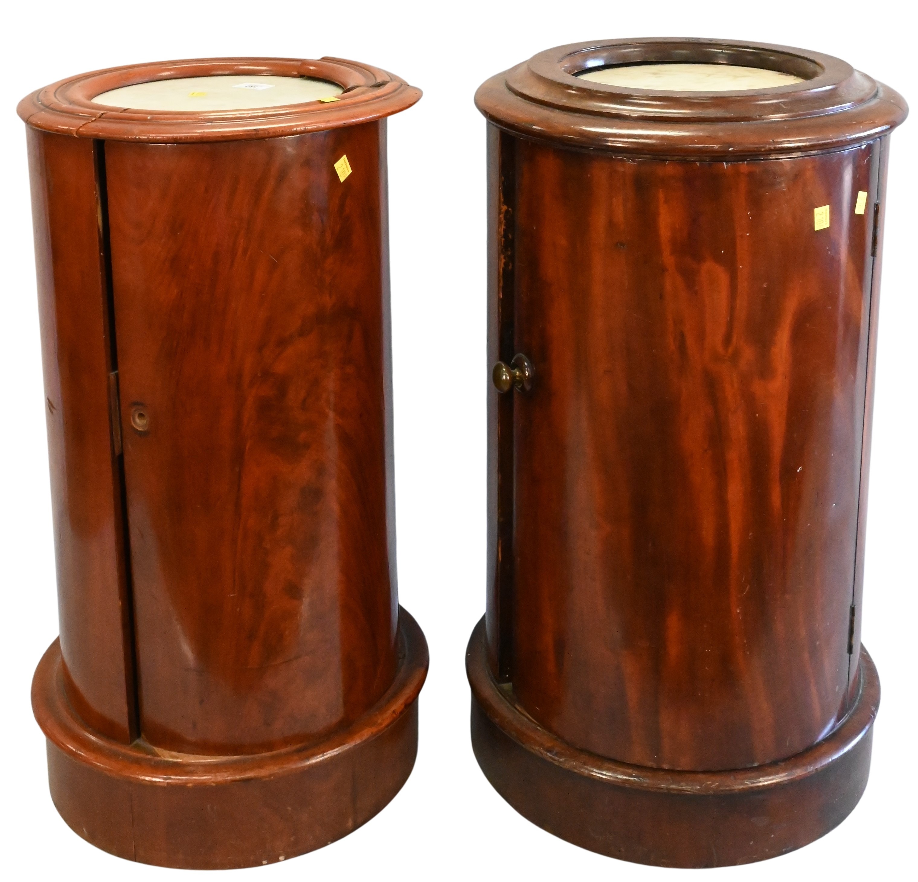 Pair of George III Style Mahogany Inlaid Corner Cabinets, each having line inlay over two drawers and two doors set on reeded legs, height 36 1/2 inches, top 23 1/2″ x 38″