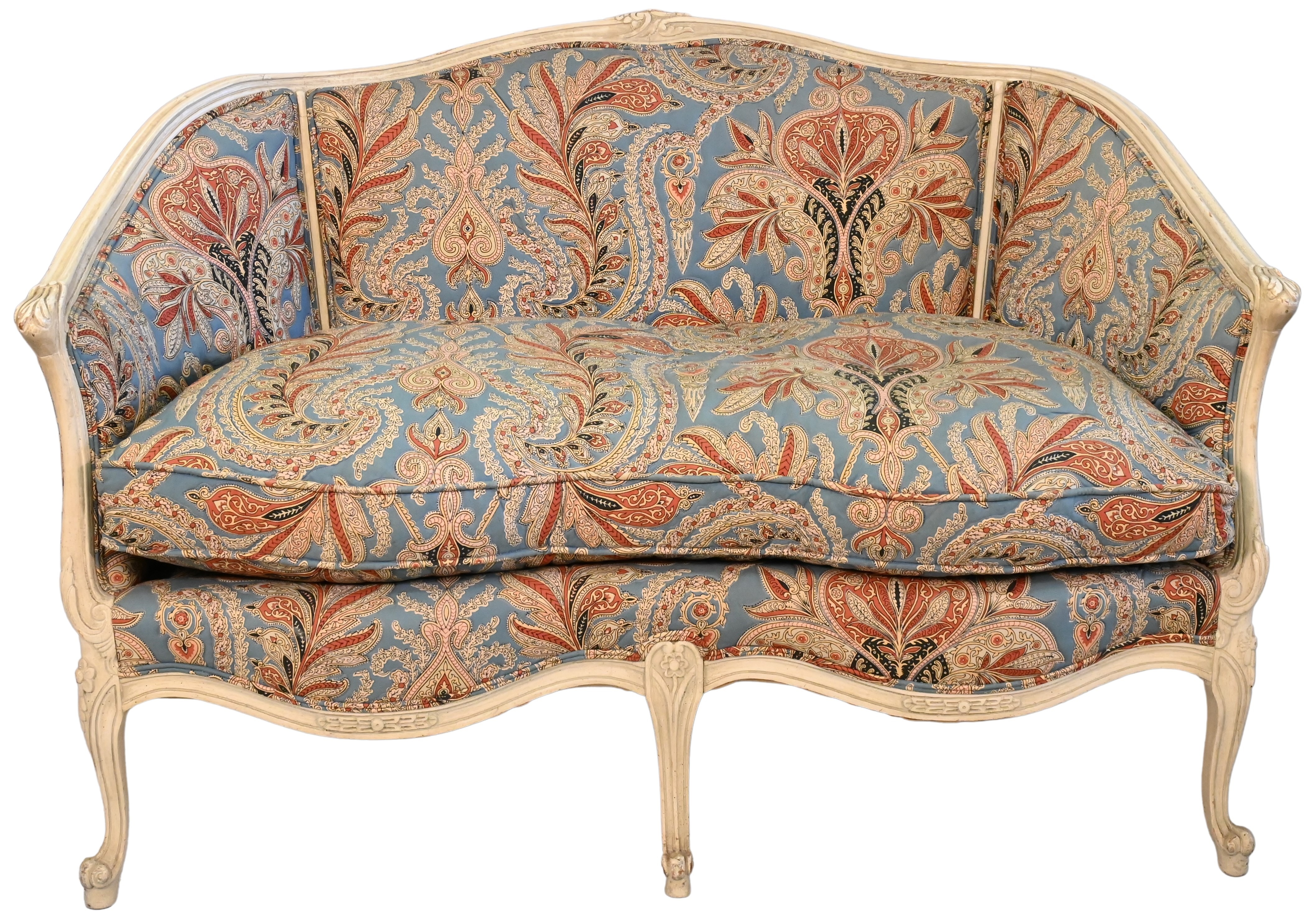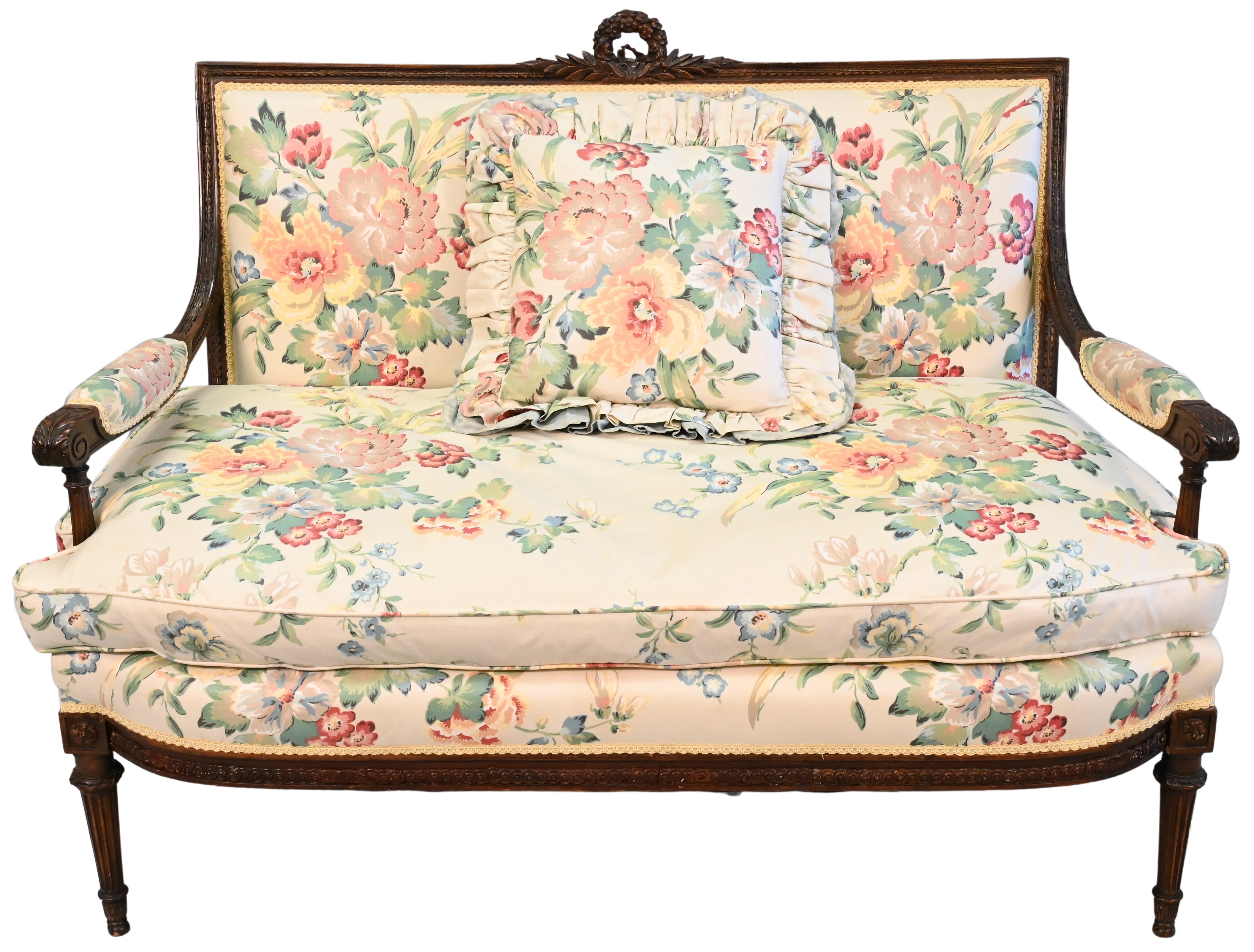 Four Piece Outdoor Set, to include a sofa, a pair of armchairs, all with cushions, along with a glass top coffee table