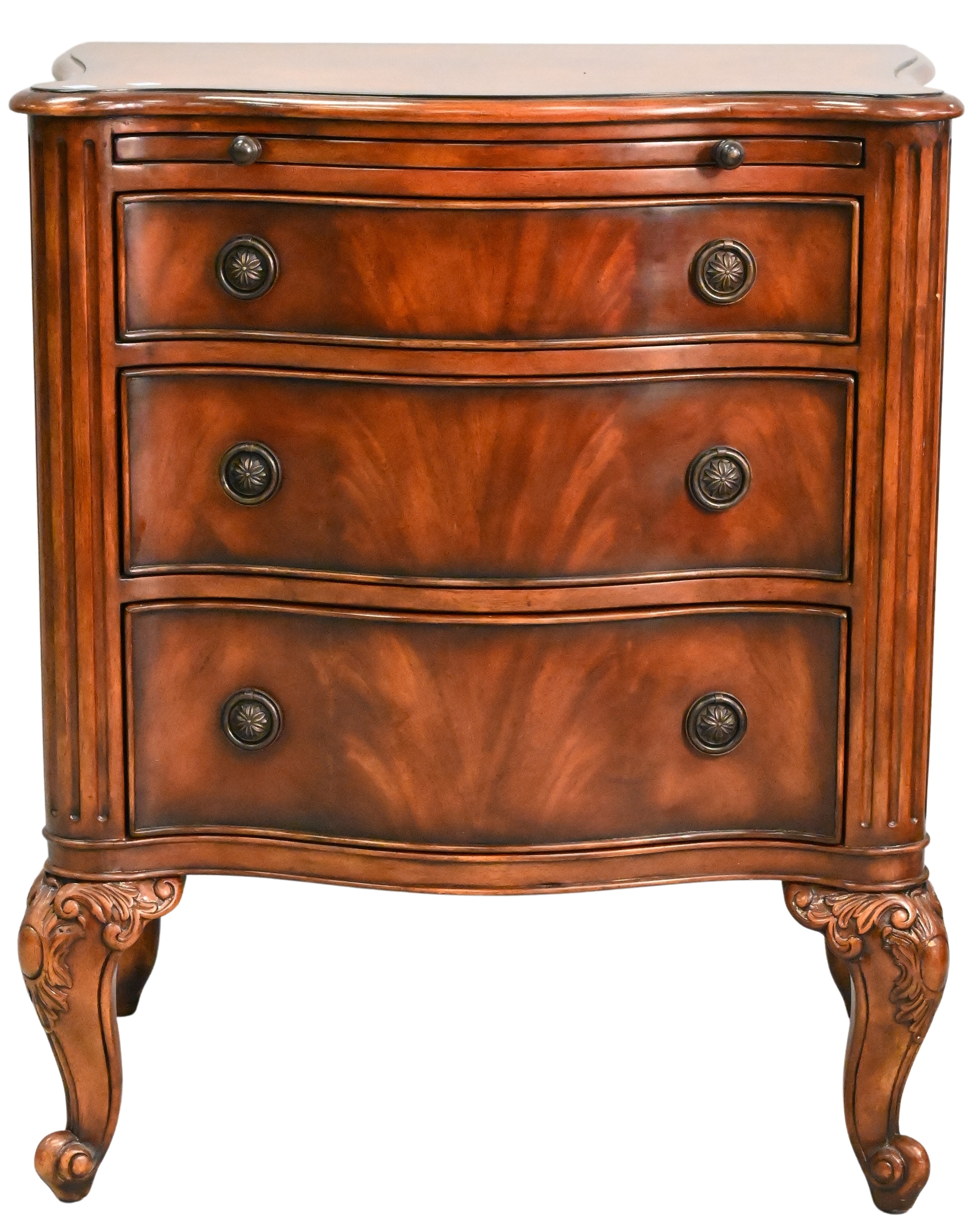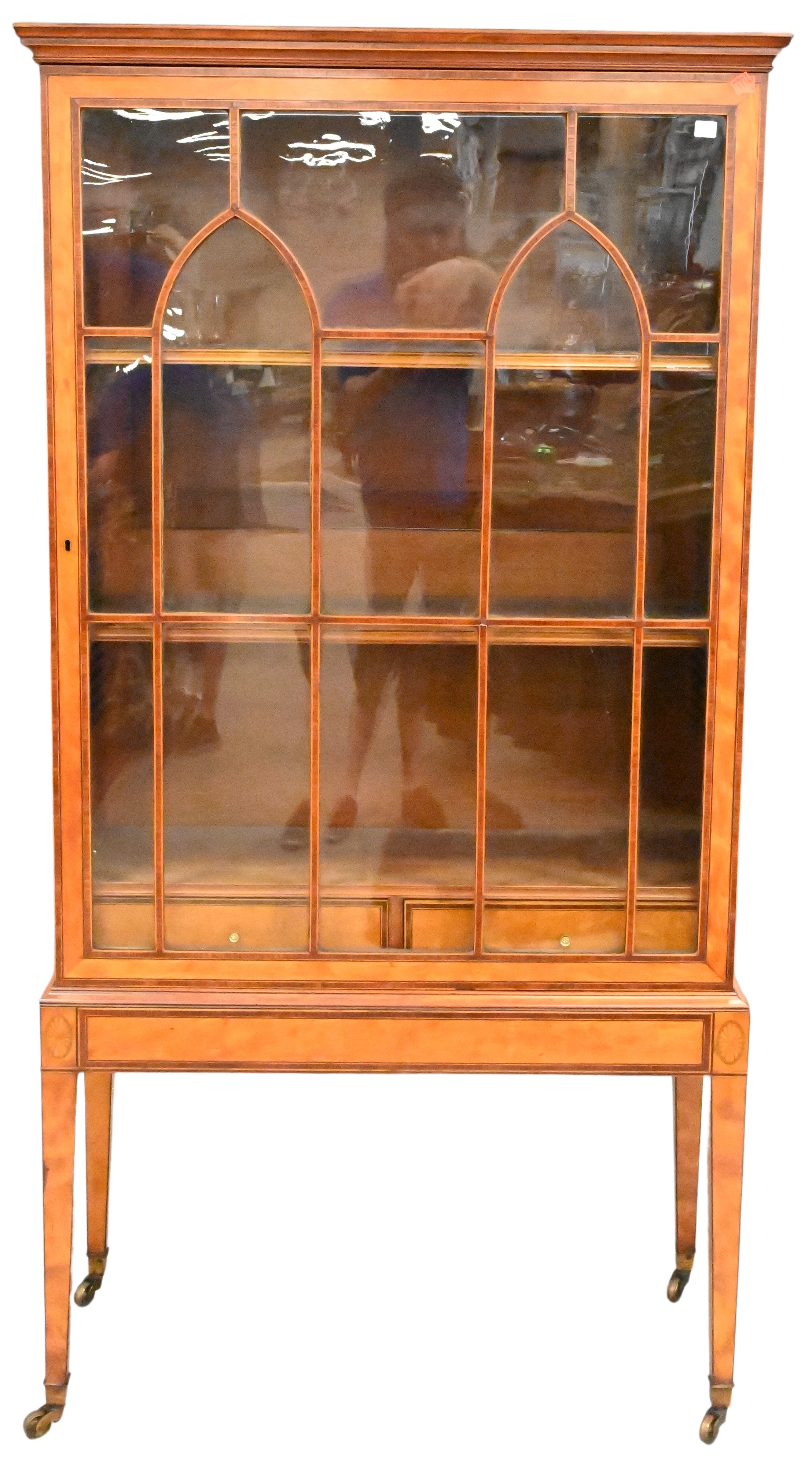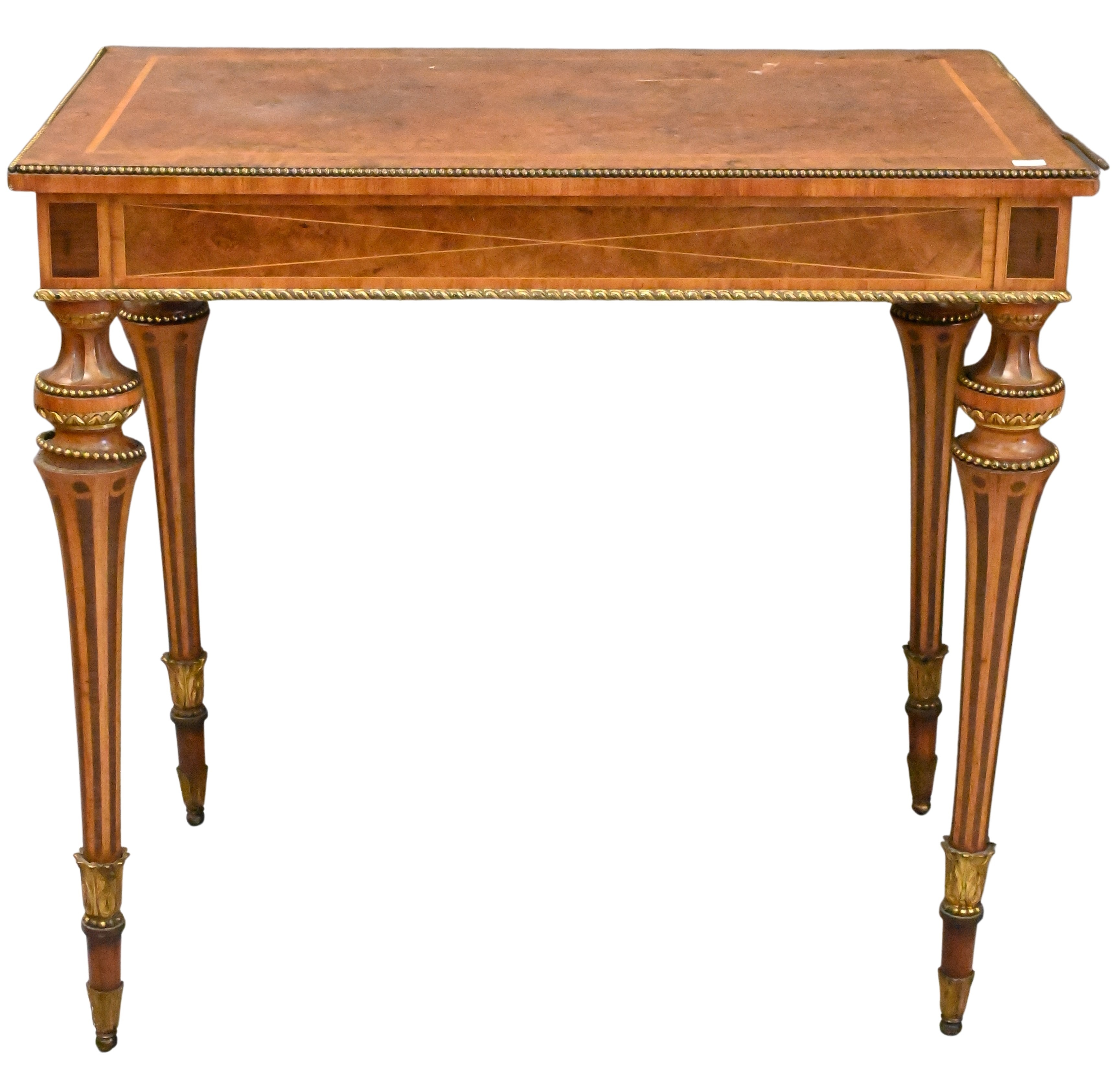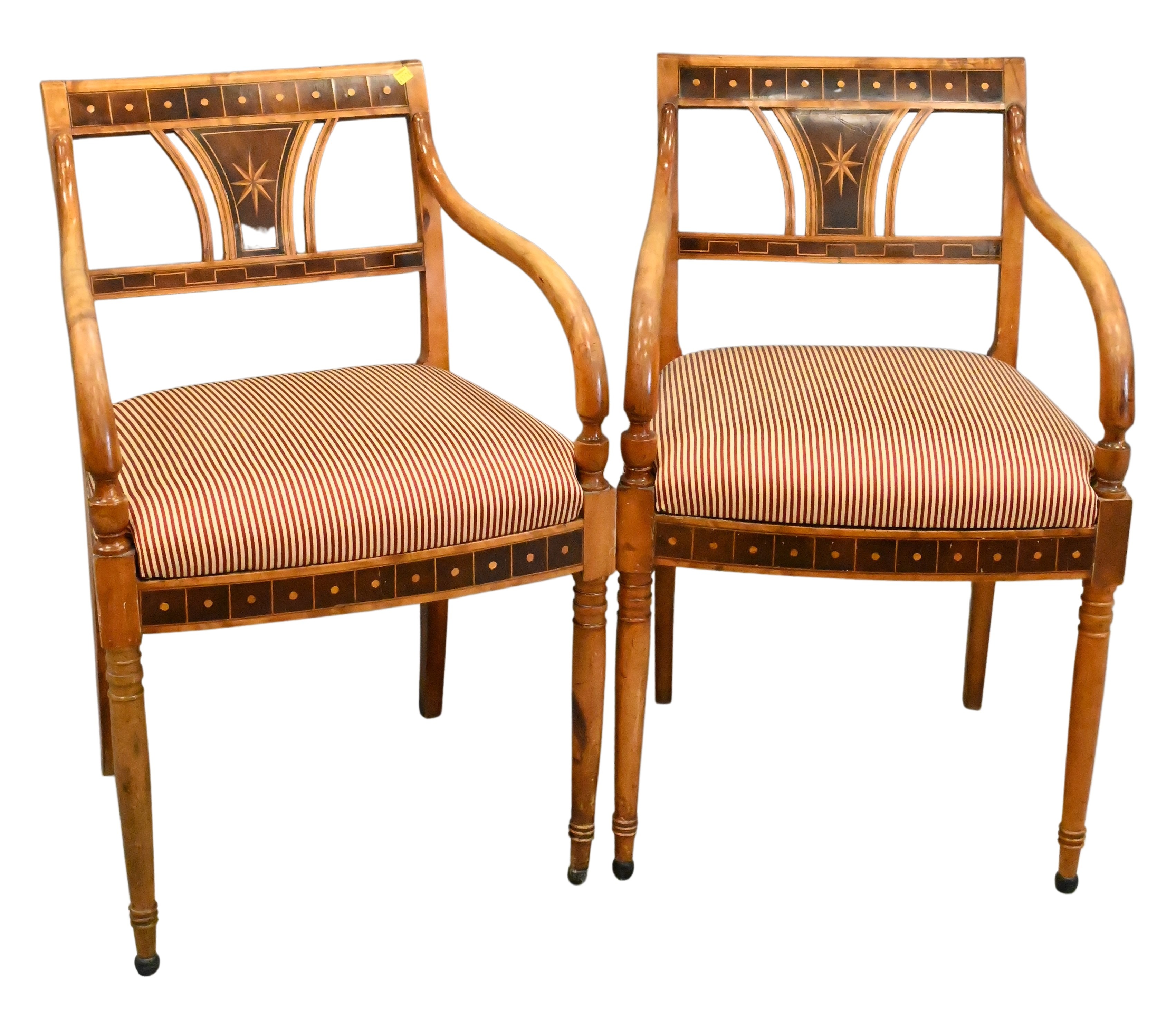 Two Piece Furniture Lot, to include a neoclassical style fruitwood marquetry planter, height 17 inches, along with a three drawer inlaid stand, height 29 inches.