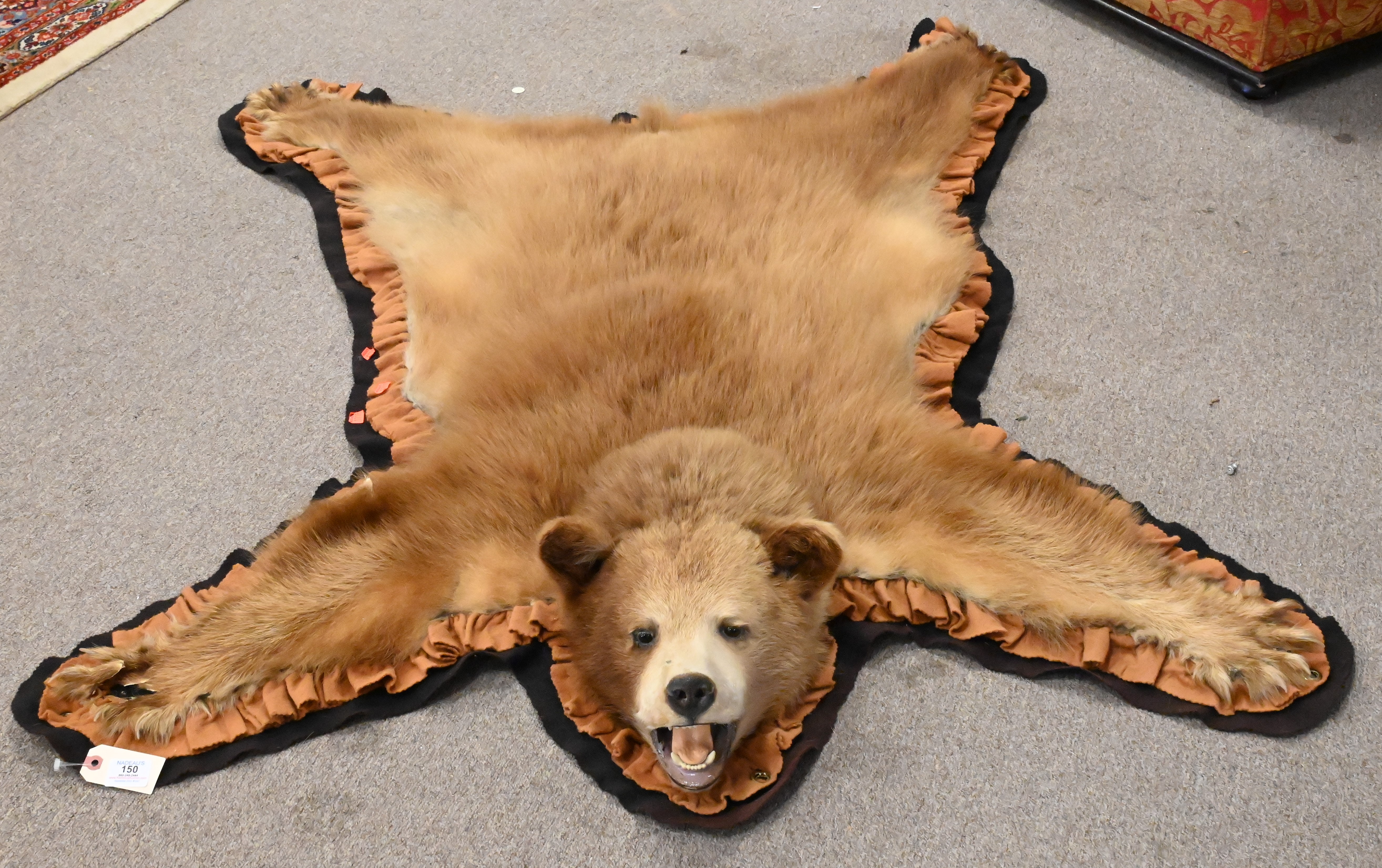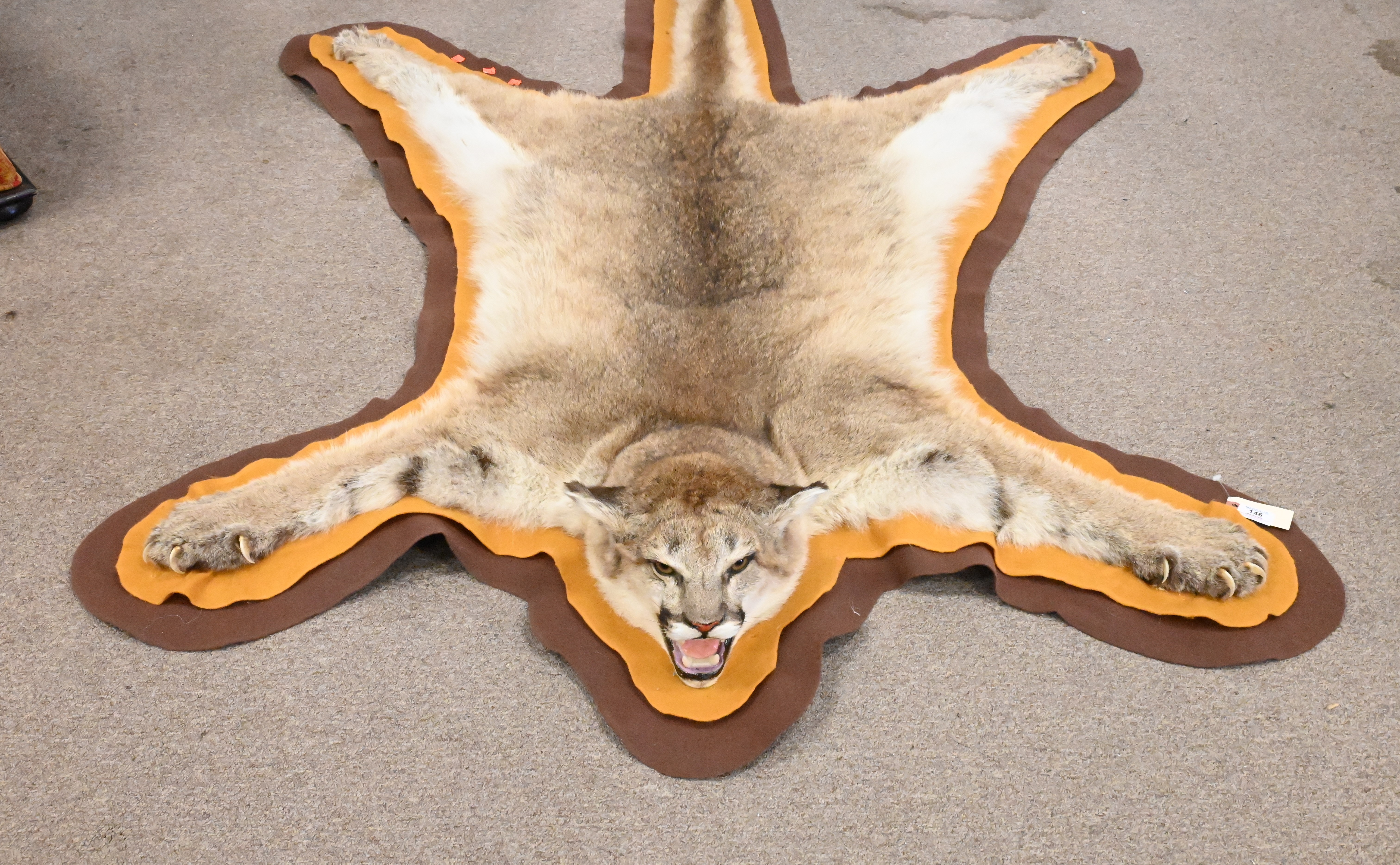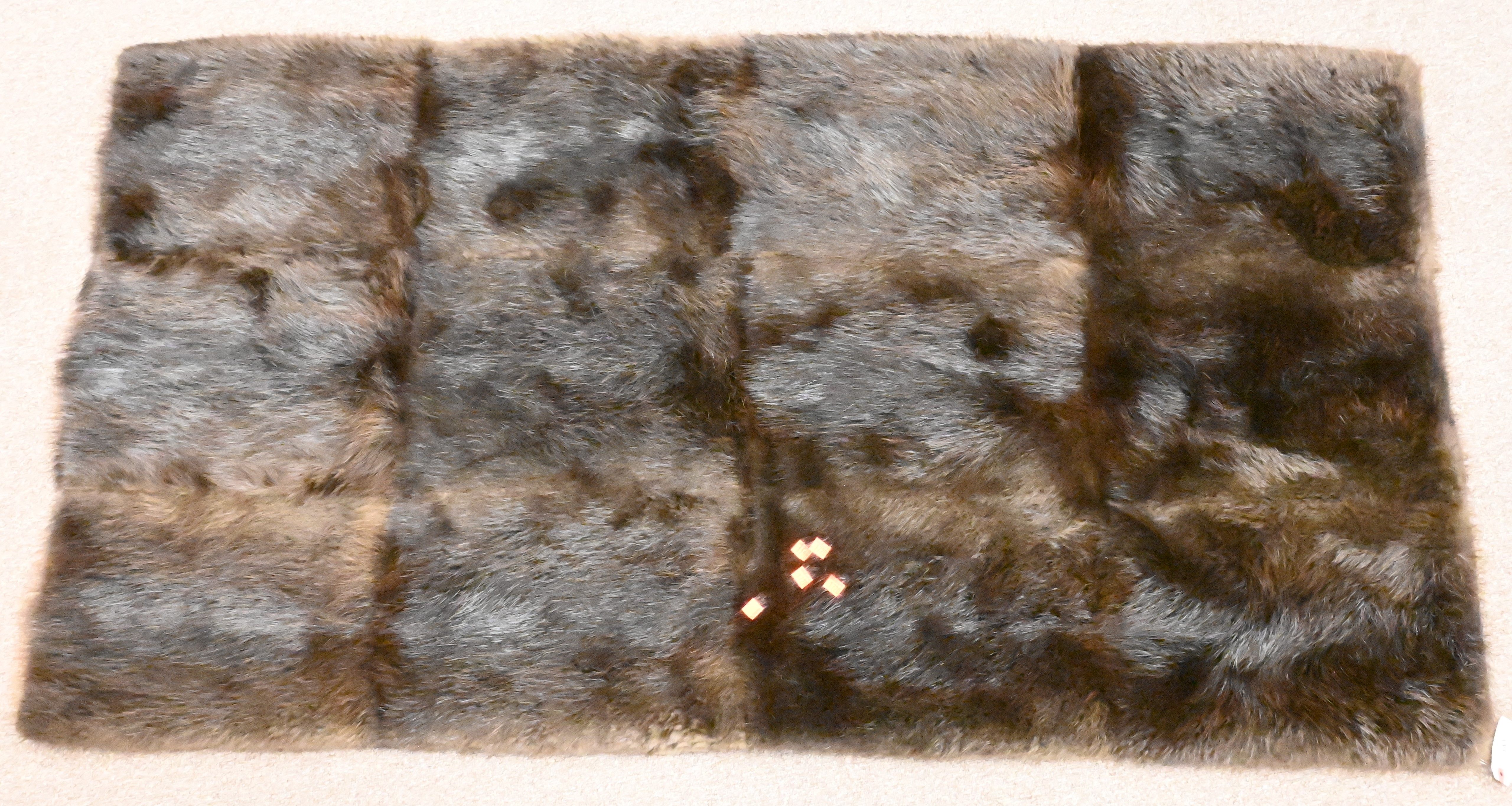 Pelt and Antler Group, to include a pair of faux antler on stamp coasters, a horn bowl and display, carved wood with antler, several loos antlers, a horn bowl, a pelt 33″ x 55″