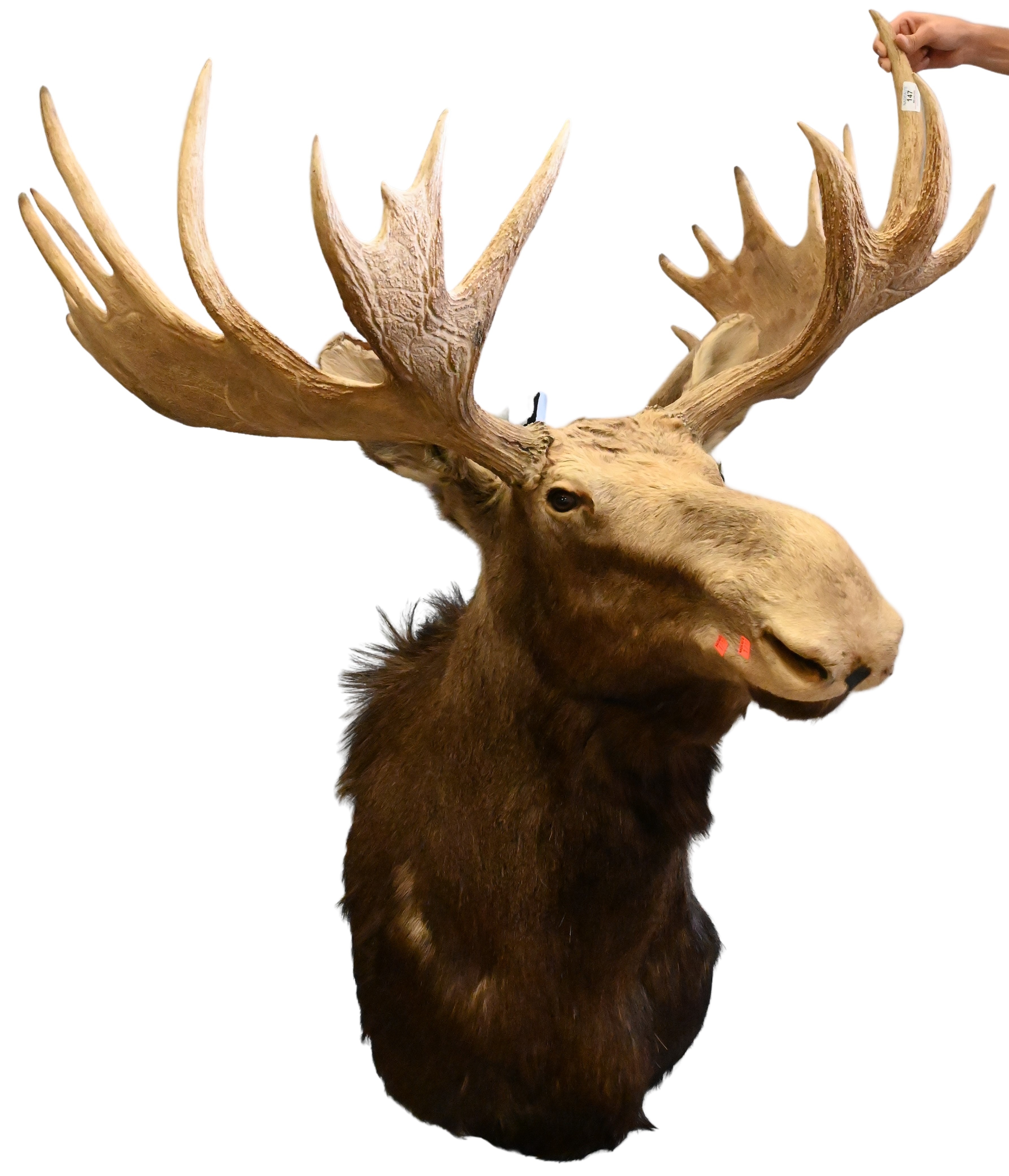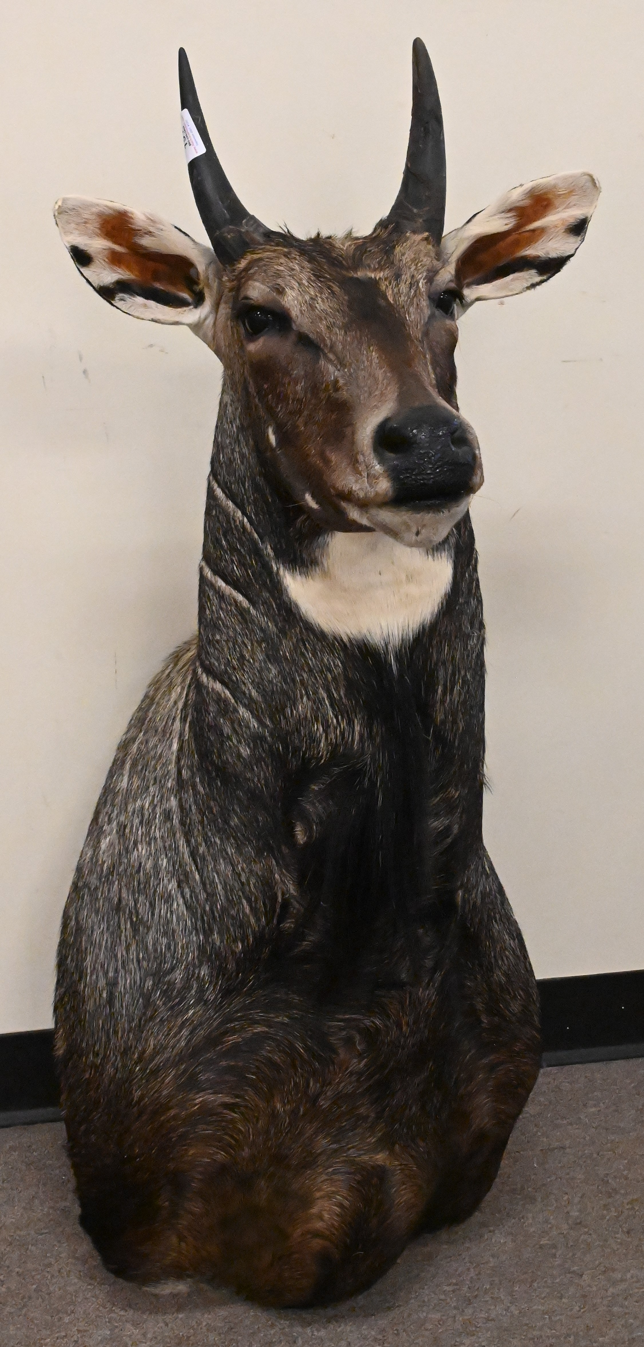 Full Body Barasingha (Indian Swamp Deer) Taxidermy Figure, set on faux base, *This piece is endangered and can only be sold to state of Connecticut residents, approximate dimensions are a height of 85 inches, length 80 inches, width 32 inches.