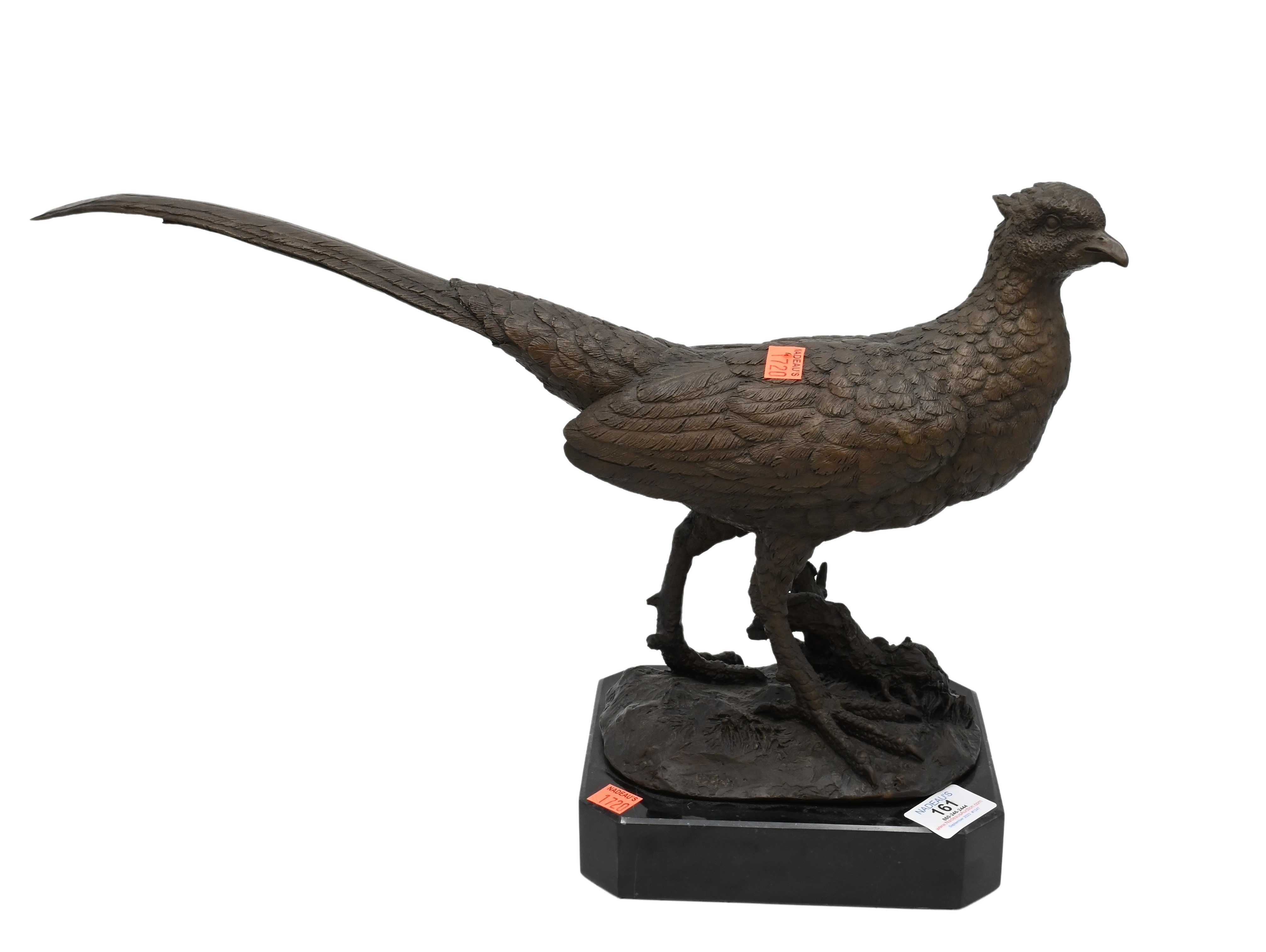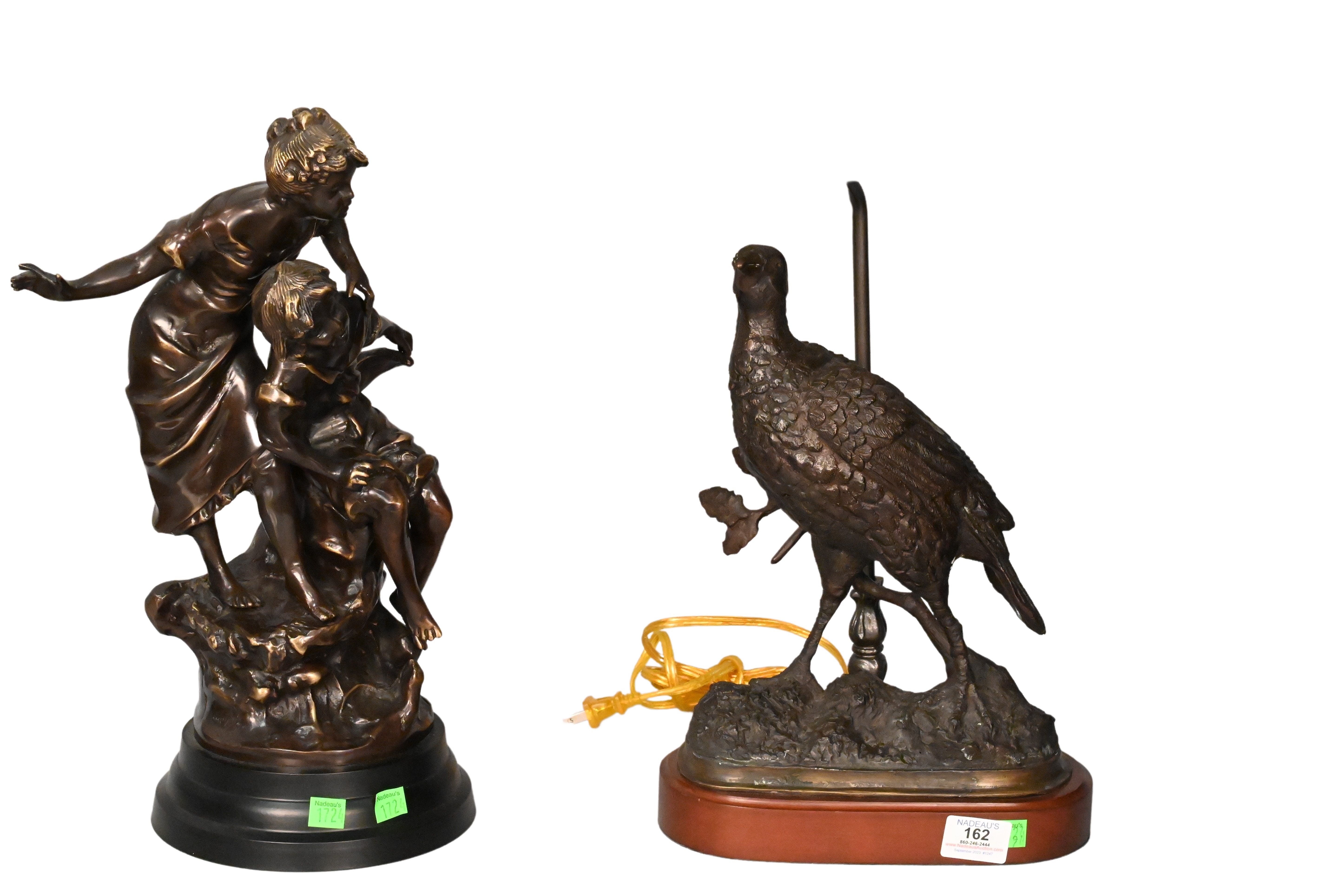 Two Piece Bronze Lot, to include a bronze pheasant mounted as a table lamp, along with a bronze statue of two children, lamp approximate height 32 inches.