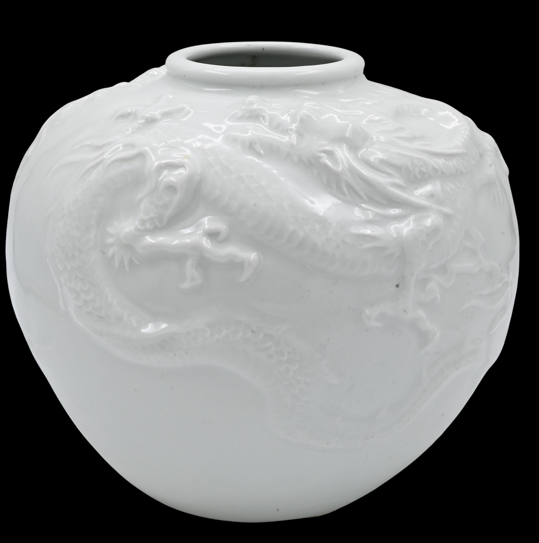 having painted scrolling vine and four claw dragon motif of baluster form