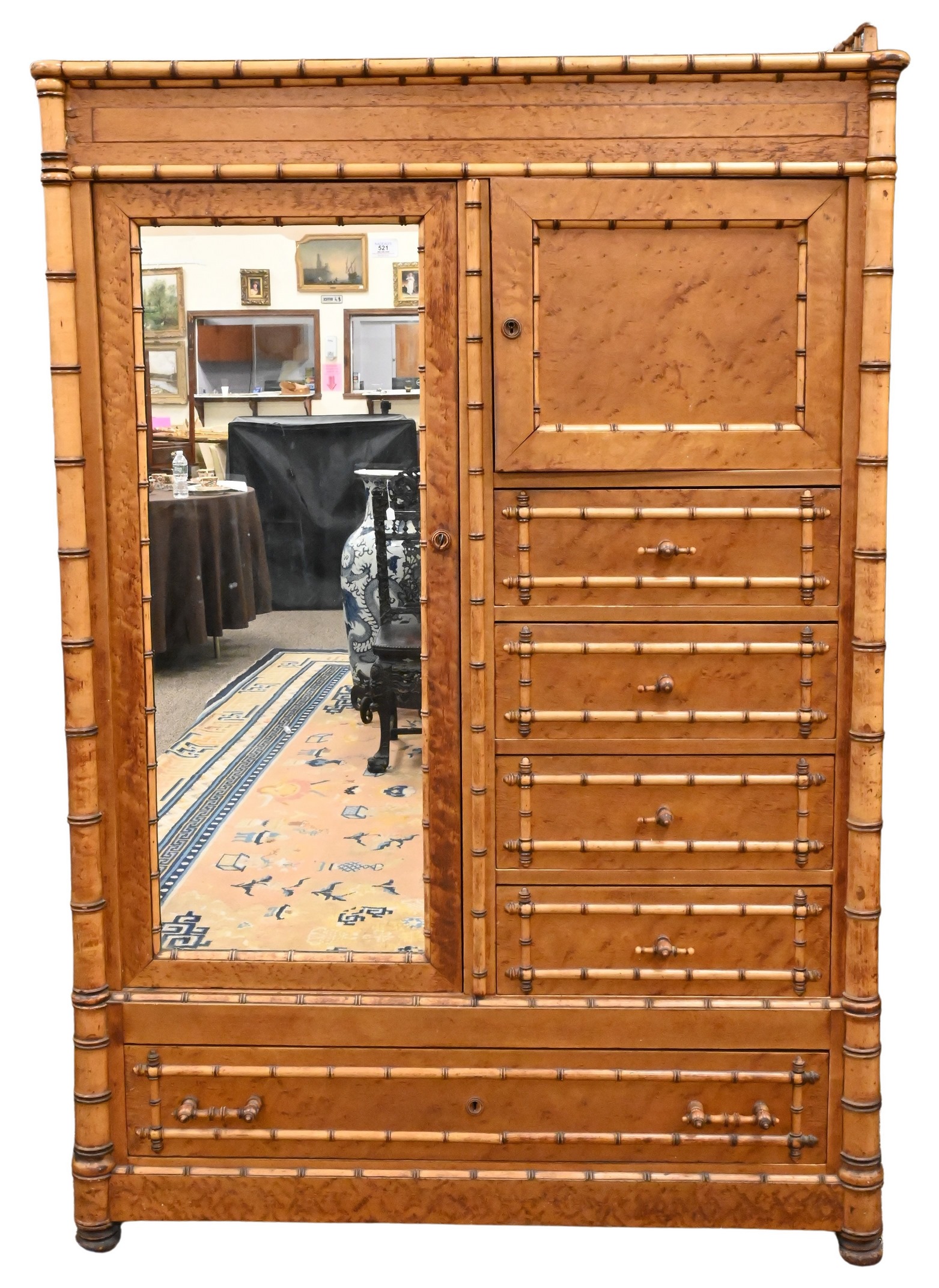 Attributed to Horner Faux Bamboo and Birds Eye Maple Chifferobe