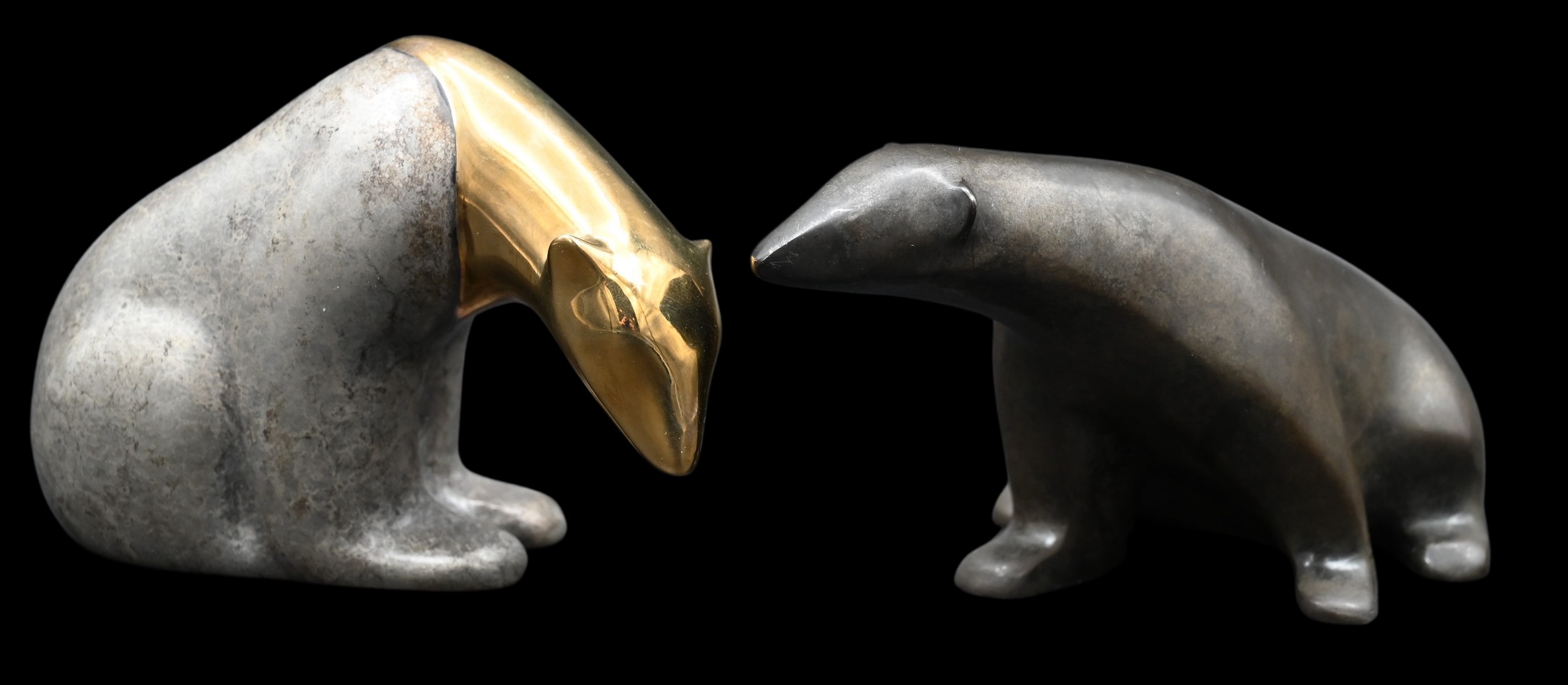to include seated polar bear having brass head patinated bronze edition 297/2500, signed on base “Loet”, along with polar bear sitting patinated bronze, edition 92/750, signed on base “Loet”