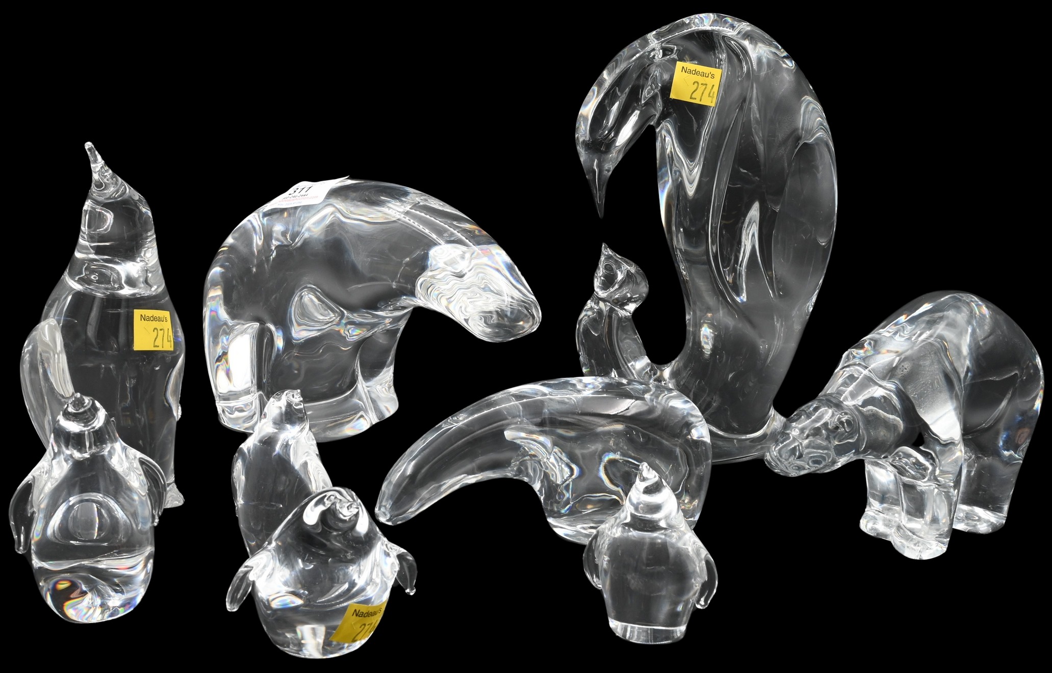 to include mother penguin and baby having etched signature, simple polar bear paper weight, and polar bear