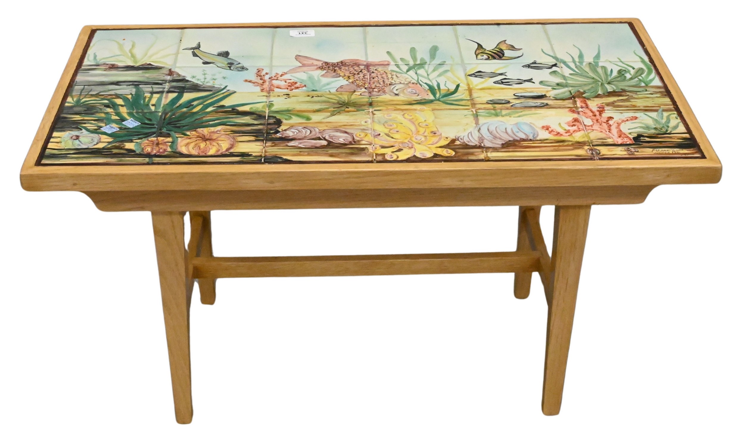 having hand painted top with underwater design, signed Feh. Sant Anna Lisbou 1991