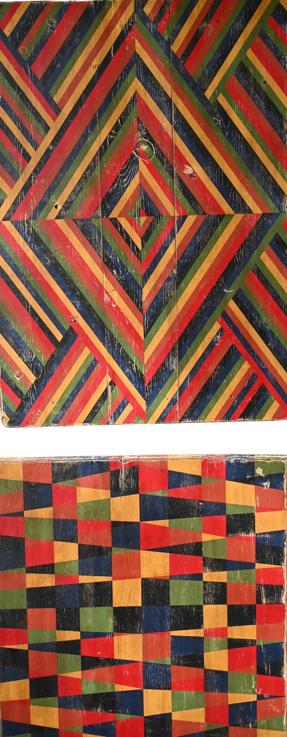 • Lot 332: Two Antique American Folk Art Painted Wall Panels