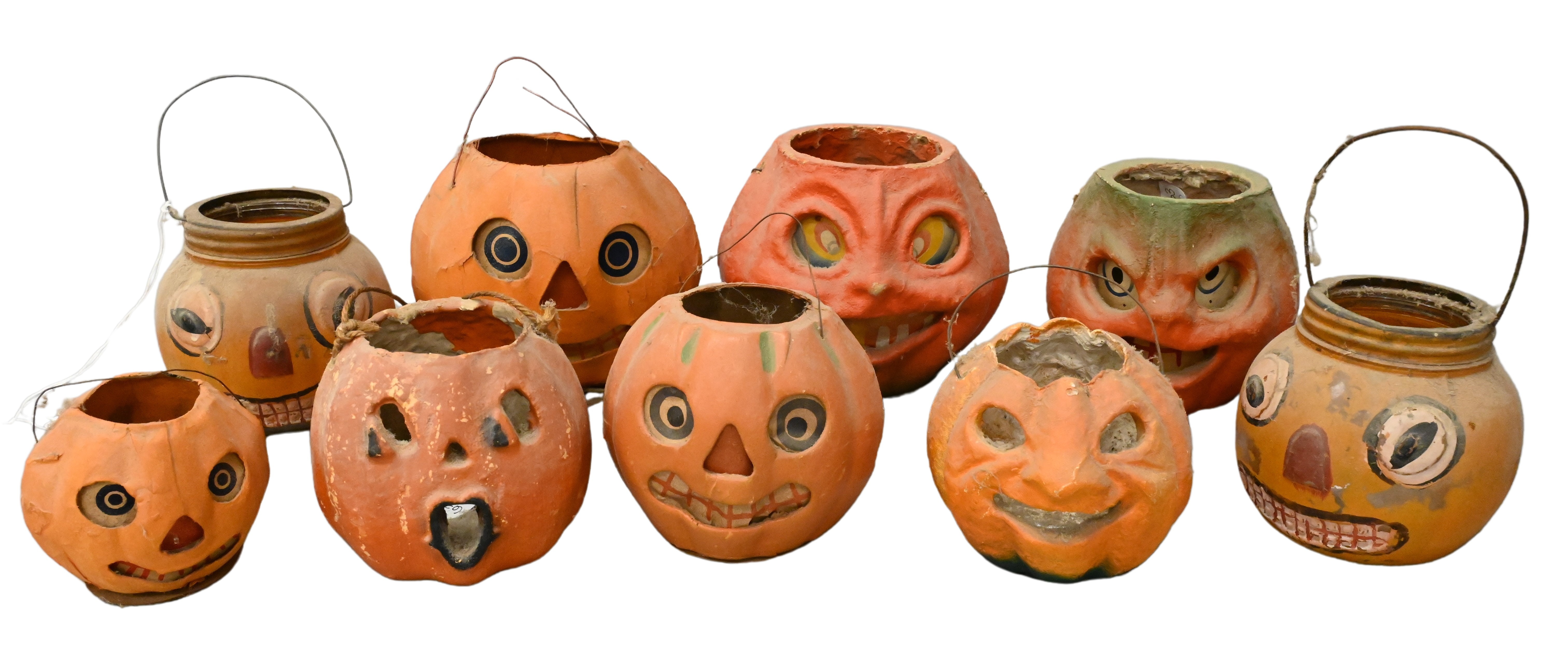 Nine Small Vintage Papier Mache Jack-O-Lanterns