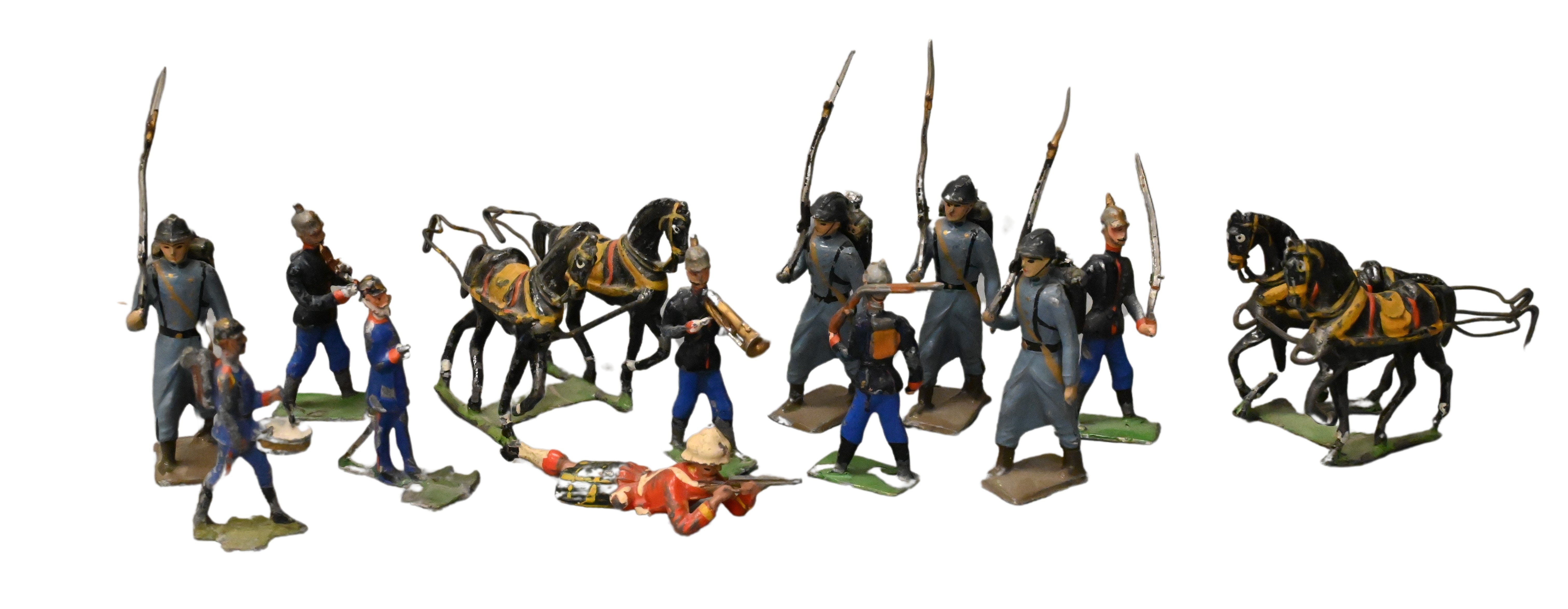 Superman wood and composition jointed doll Ideal 1940, this is the first Superman action figure sold by Ideal novelty and toy company, Walt Disney MCMLXV bear, papier mache Mickey Mouse, painted wood Felix the Cat, and Toonville tin wind up train