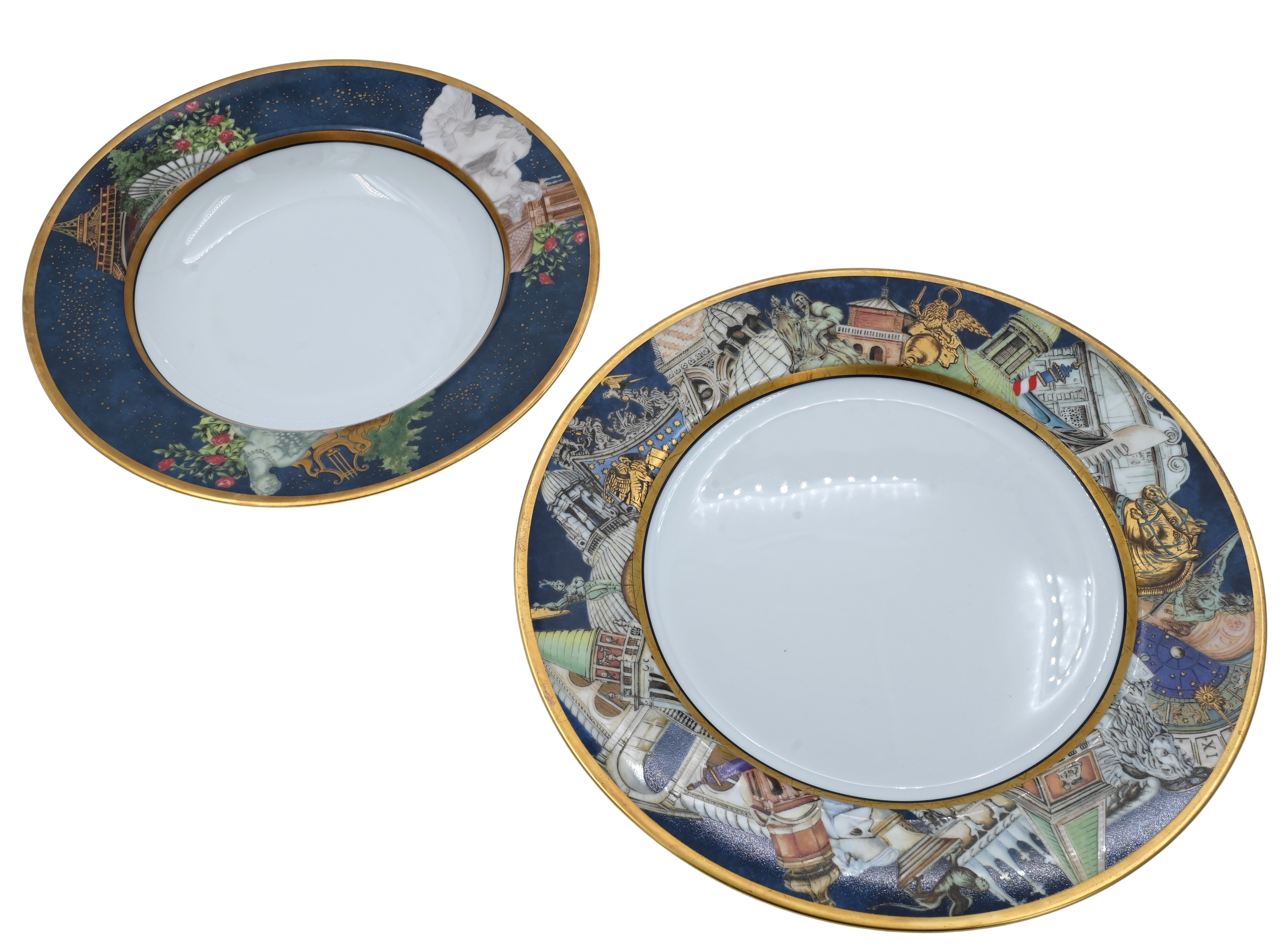 to include 11 dinner plates, 16 soup bowls, featuring New York, Venice, Rome, London, Paris, Londres