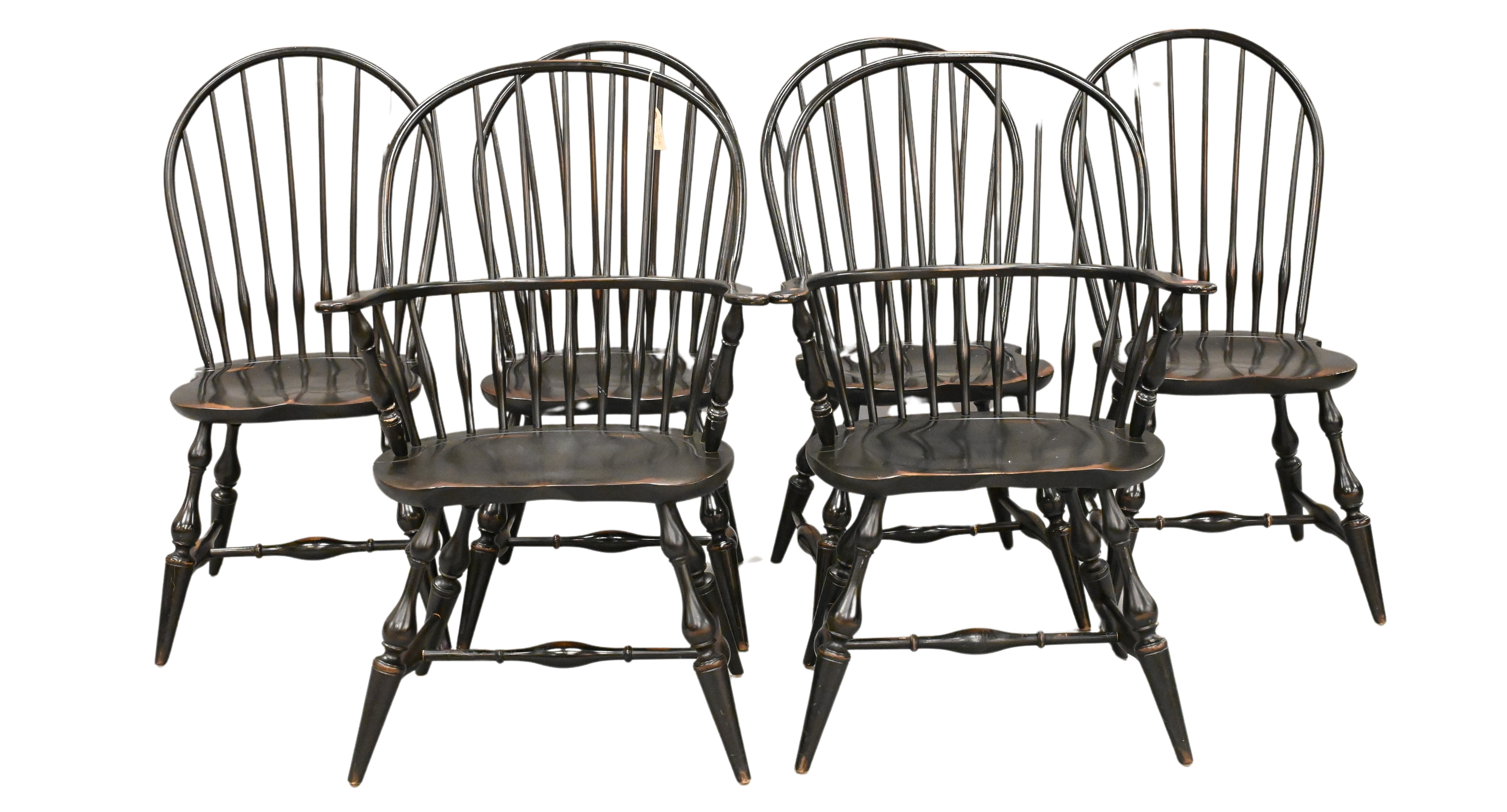 to include two armchairs and four side chairs, having bowback and saddle seats, marked on base 1996 Gardner, MA