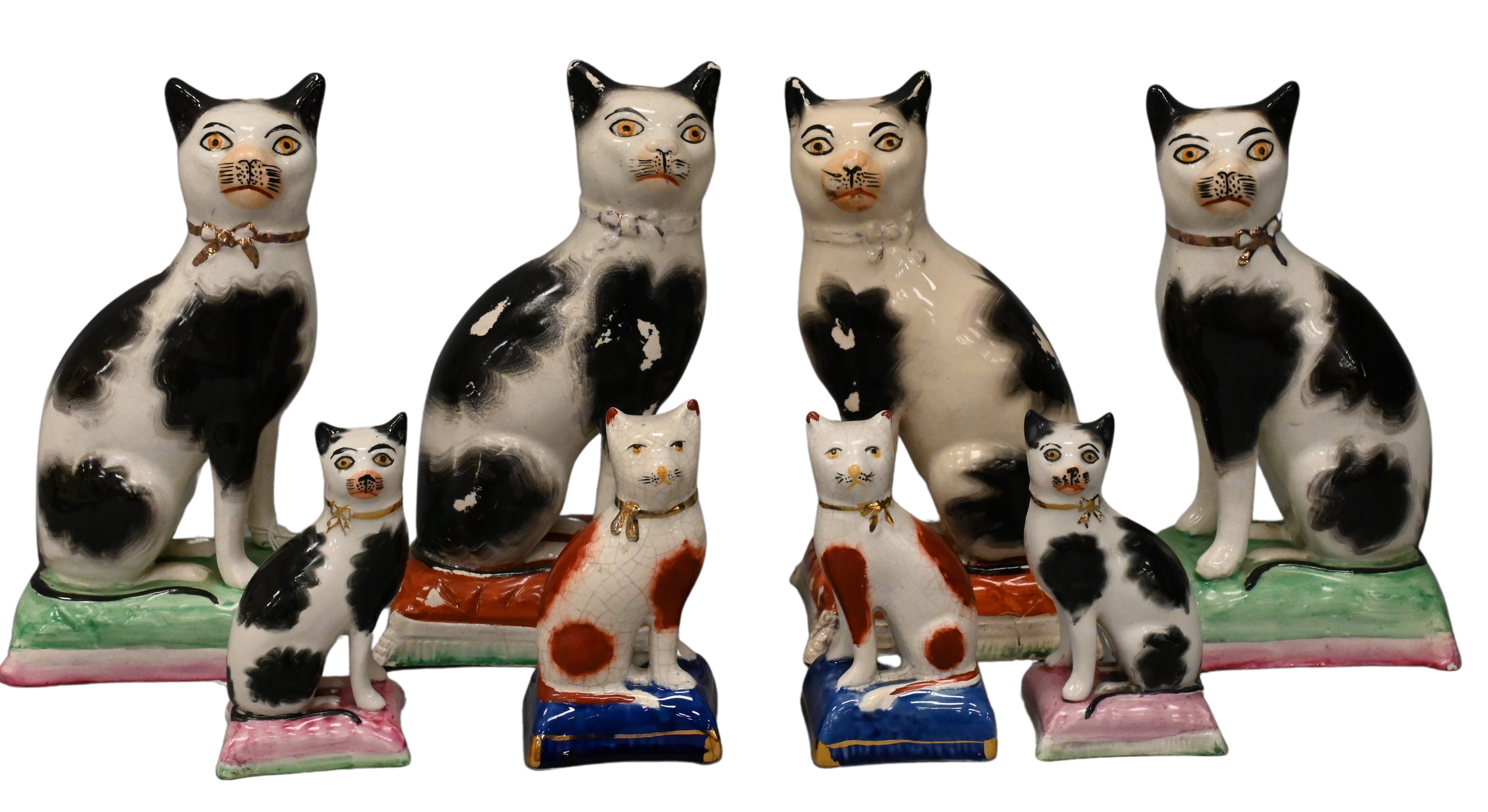 Five Pairs of Staffordshire Cats on Pillows