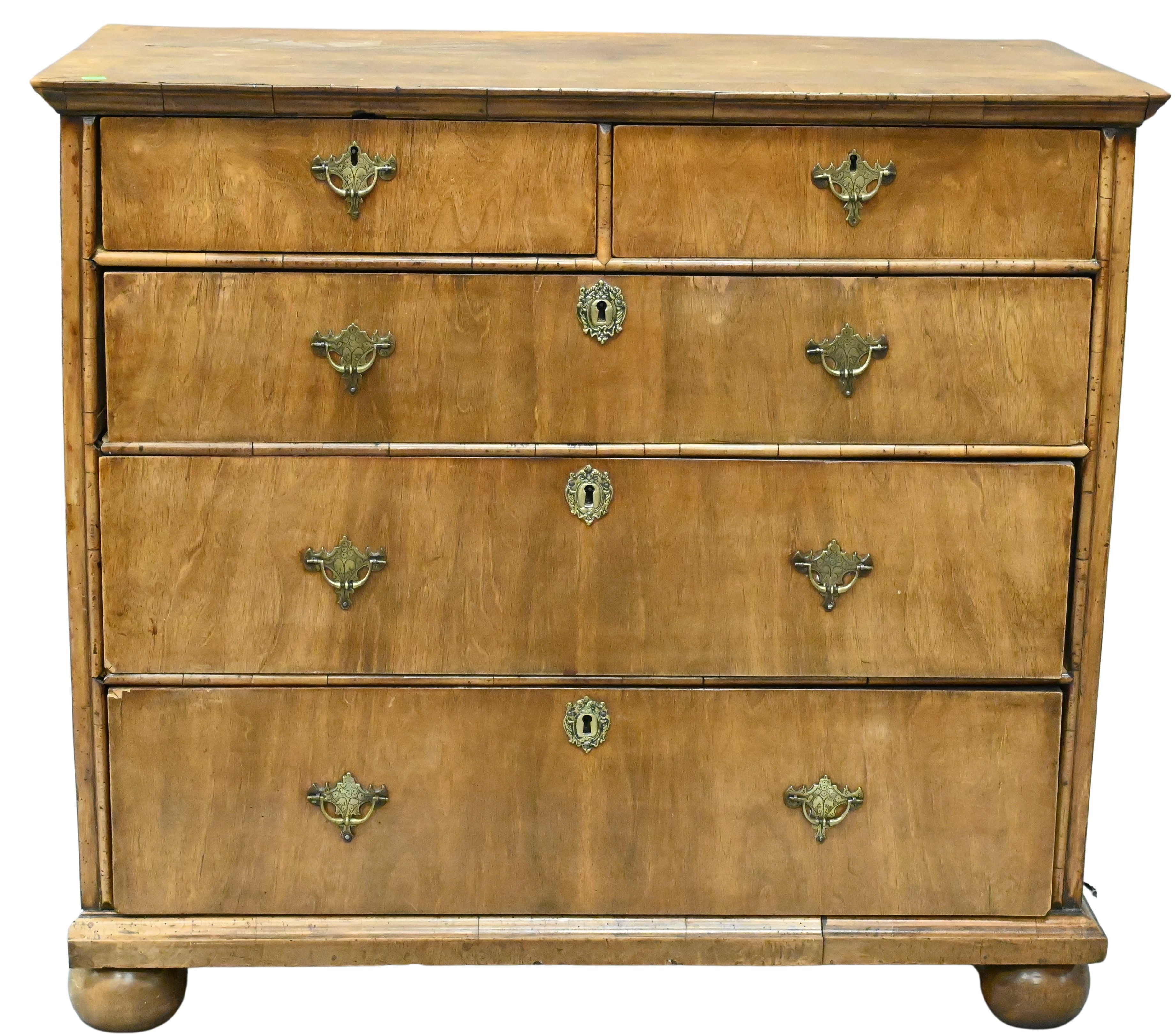 having fan carved center drawer, raised on cabriole legs, ending in claw and ball feet, partially made using older elements