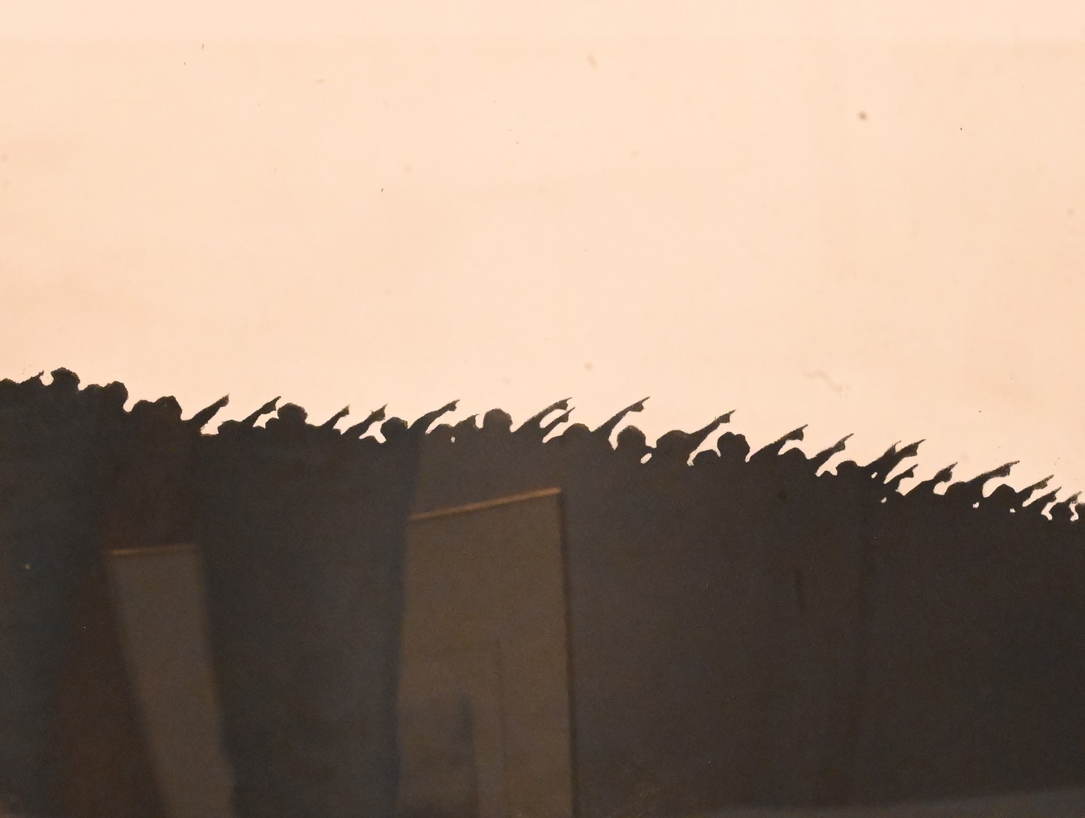 having etched and painted figures on it, signed near bottom of painted area and on the very bottom and dated 1895
