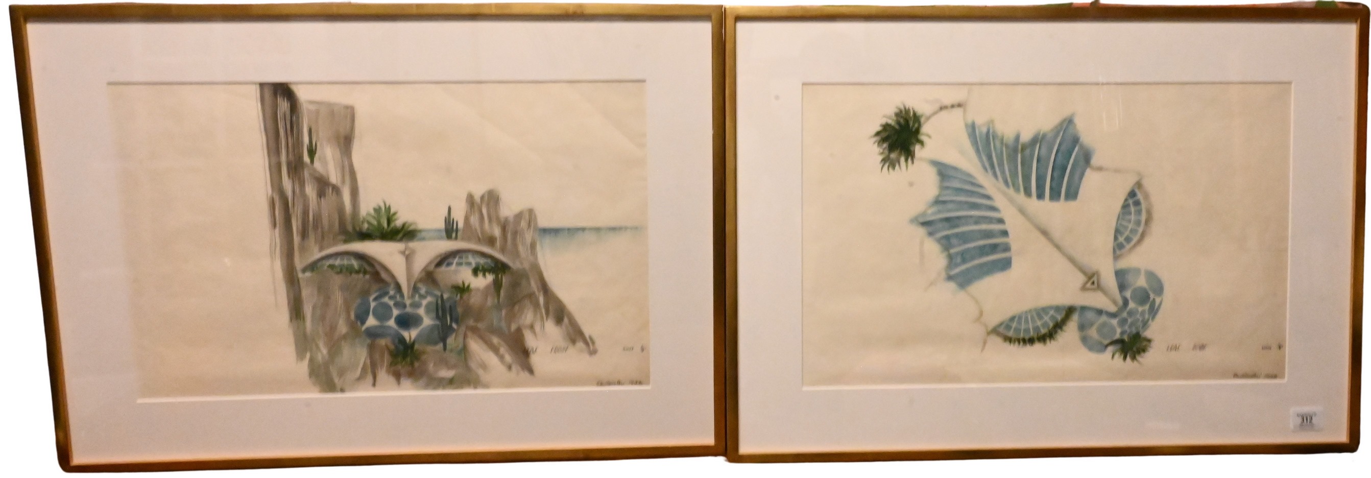 Set of Five Paolo Soleri (Italian/American 1919-2013) Architectural “Leaf Series” Drawings