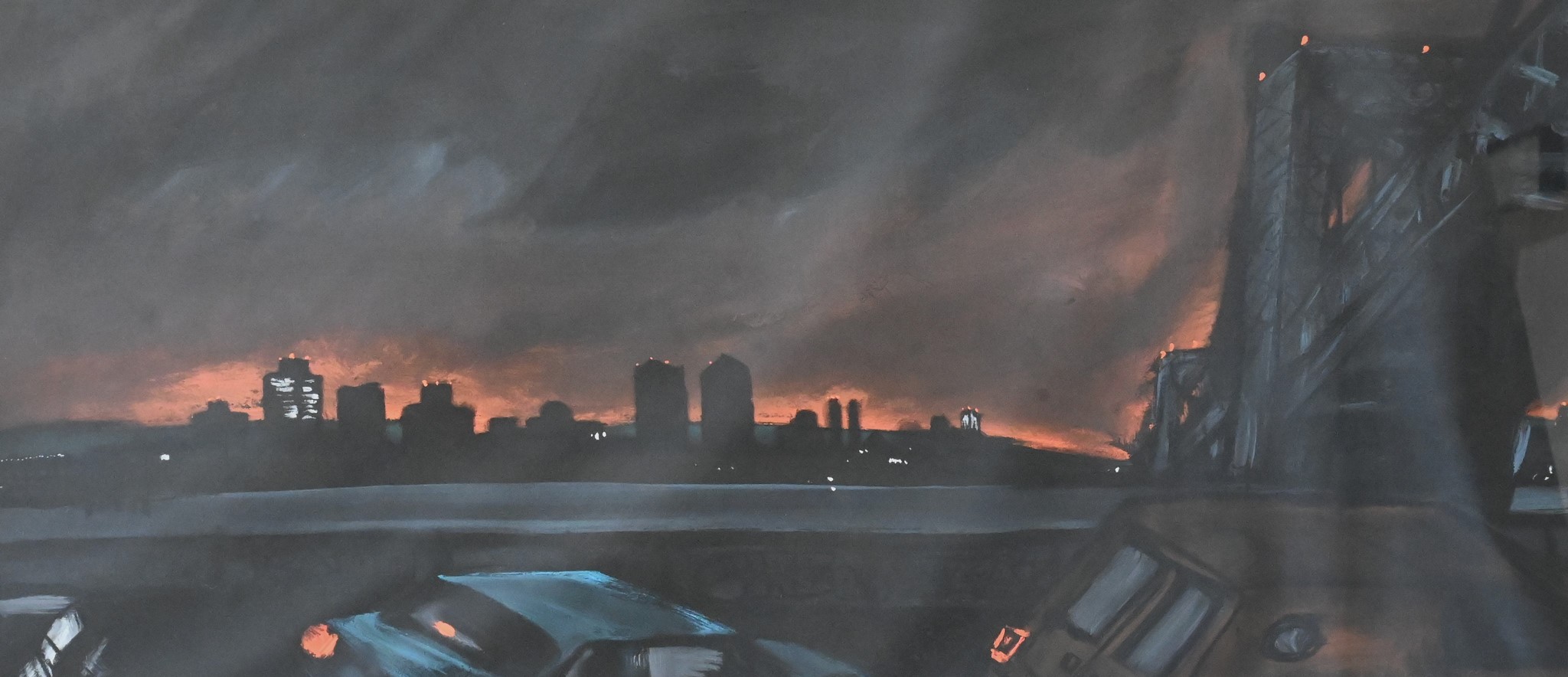 Acrylic on canvas and hand blown hourglass filled with WTC dust