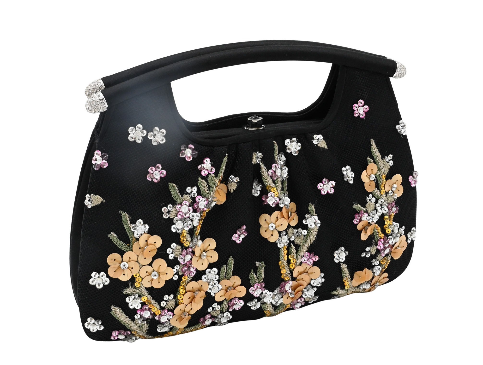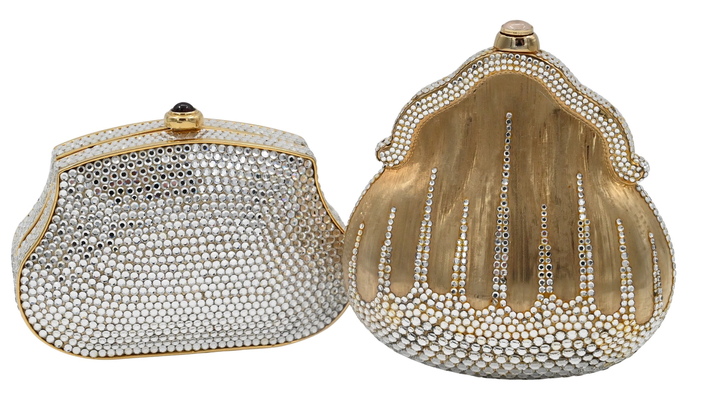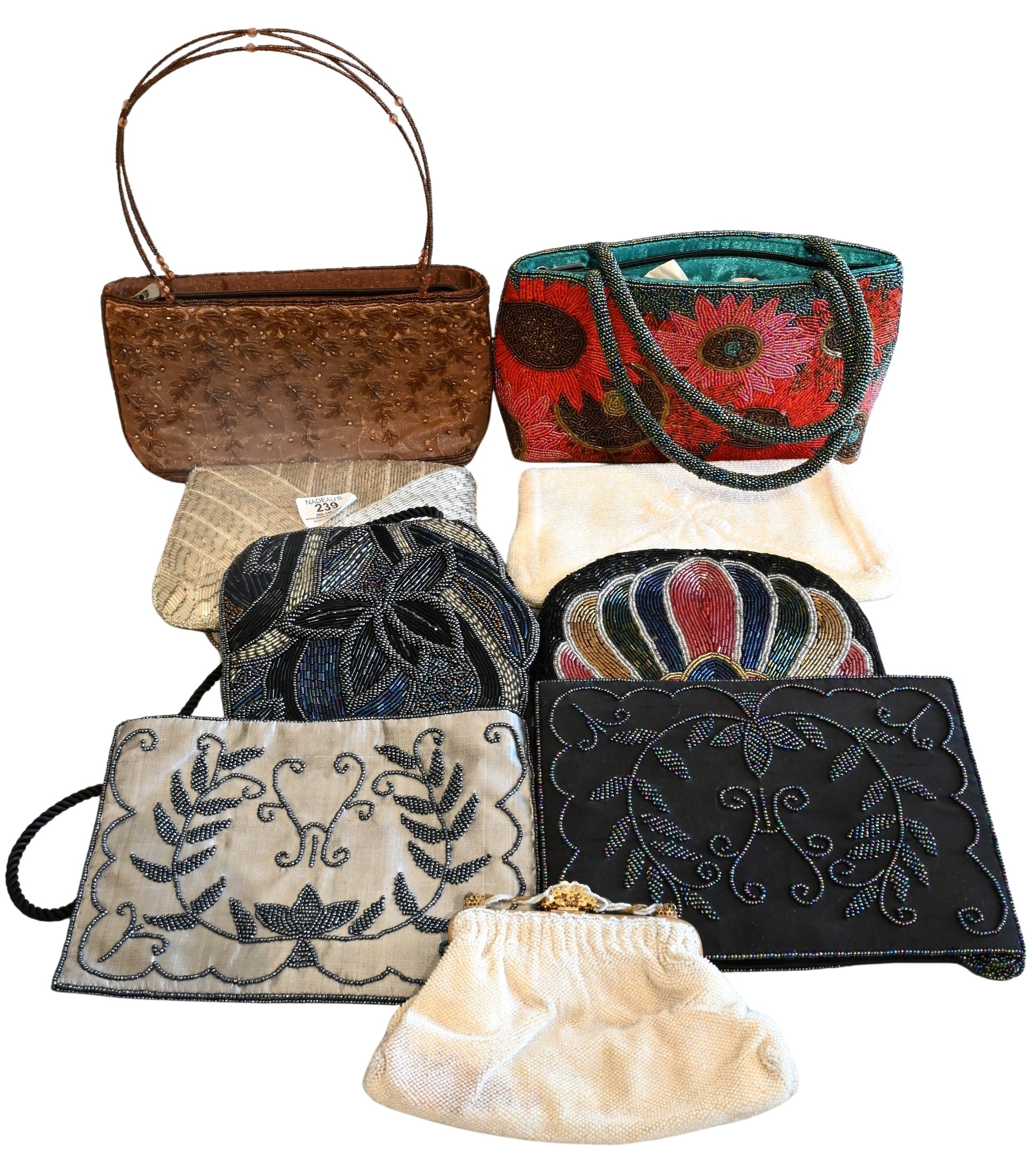 Altman et Fils Paris small white beaded clutch, La Regale rainbow beaded, Richere silver beaded, etcetera