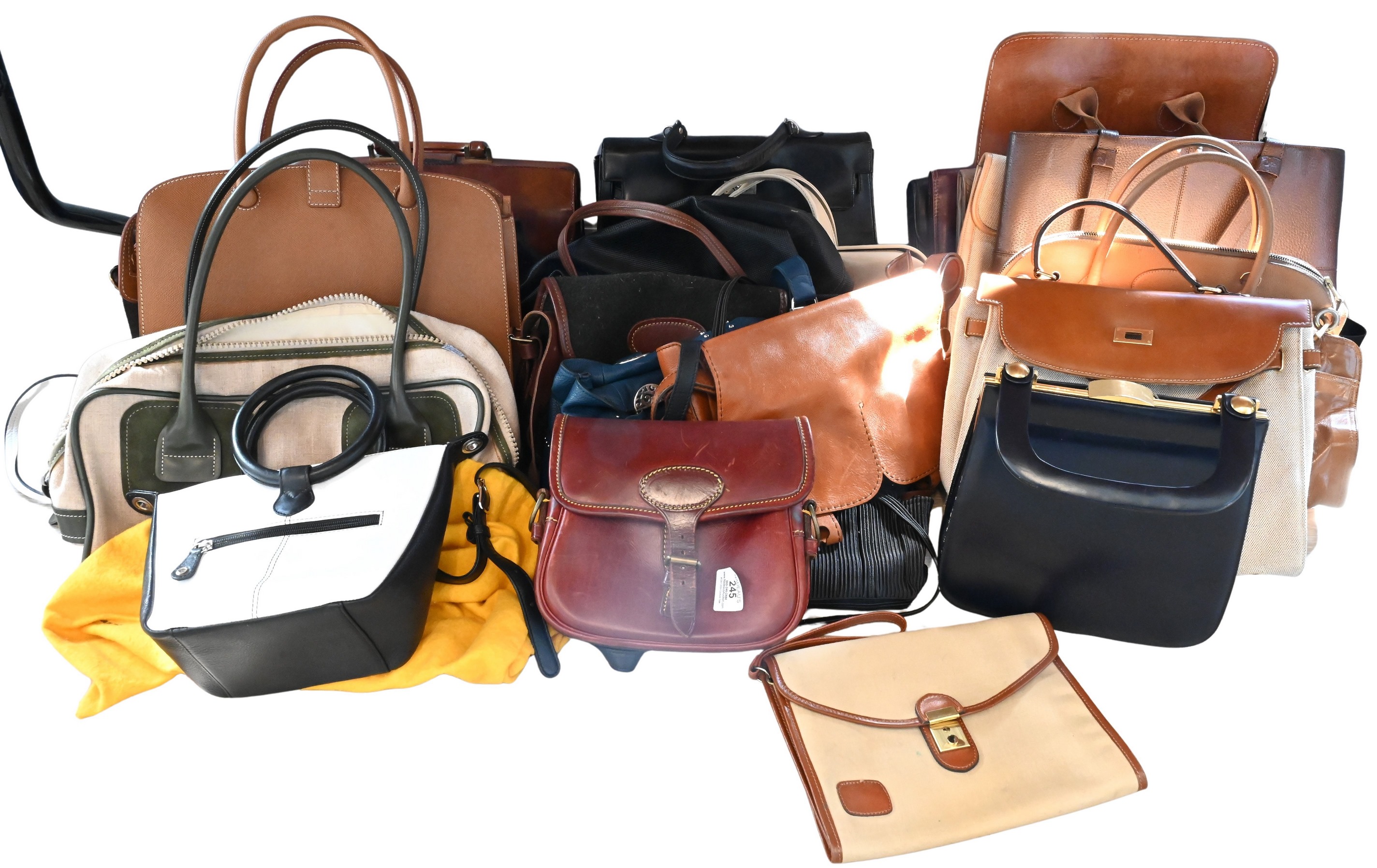 to include red, black, and navy leather bags, snake or alligator skin, and brands such as Desmo, Lambertson Truex, Jay Herbert, etcetera