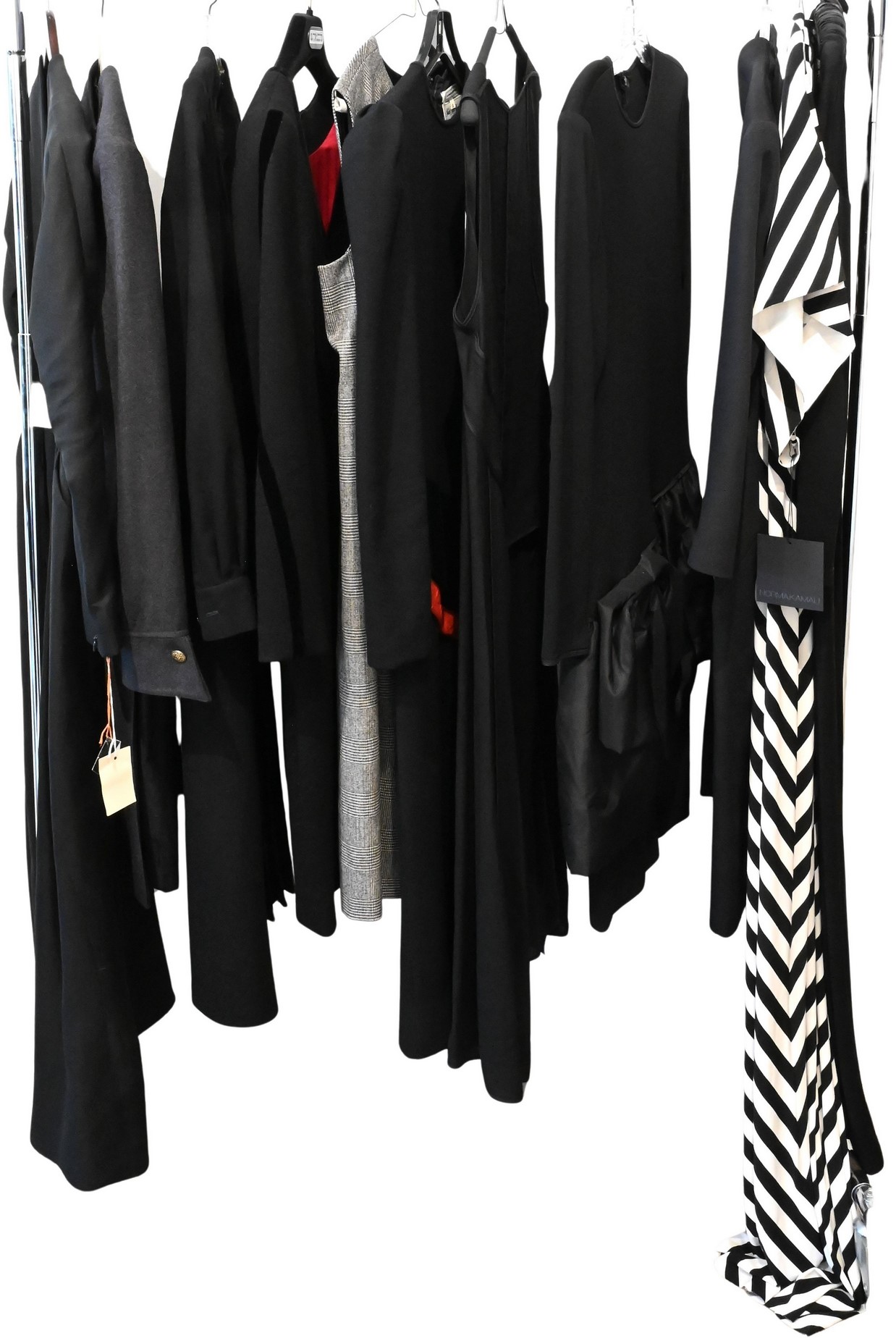 to include cream Ilie Wacs cashmere and silk size 12, Searle in black, Larry Levine size 6, Cinzia Rocca for Neiman Marcus, etcetera