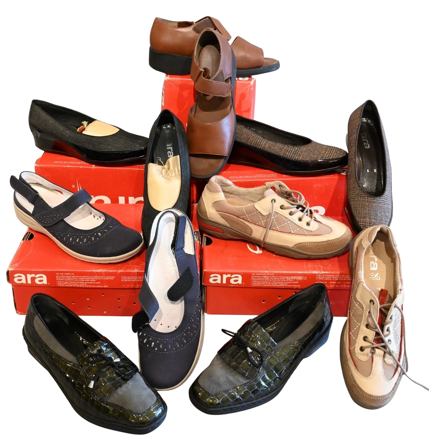 “Sherry” black, “Sable” in brown, “Nene” in navy blue, sizes 9-9 1/2