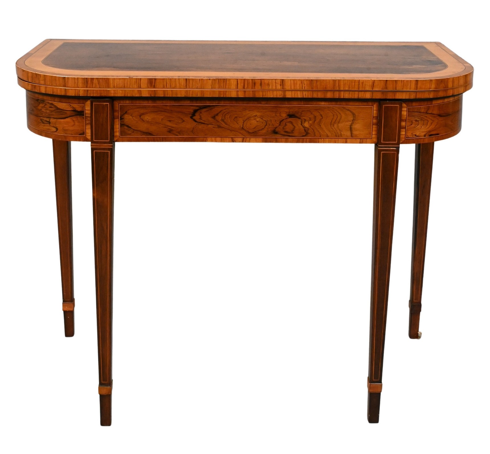 having banded satinwood top, opening to felt interior, all on line inlaid square tapered legs, English circa 1800, three small lines of veneer missing