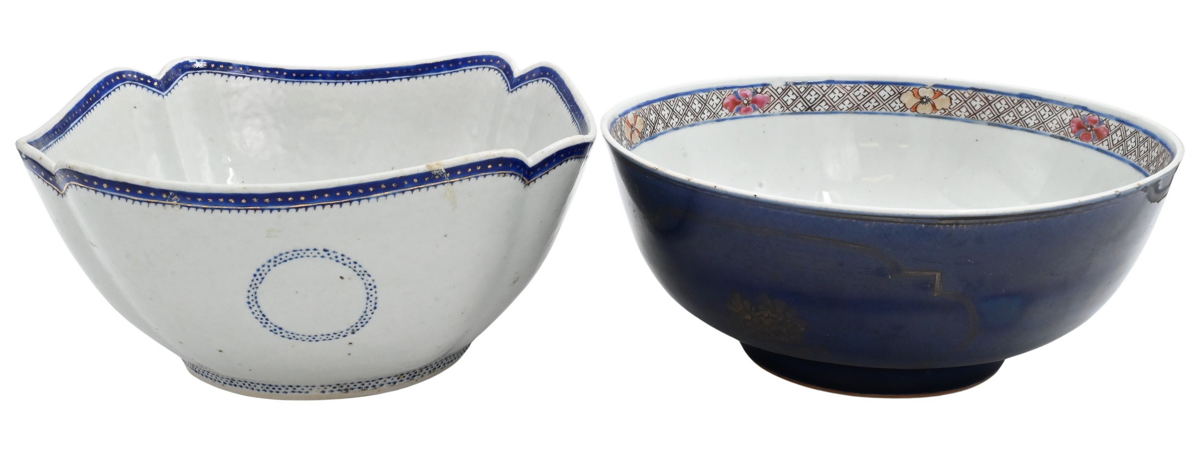cobalt bowl height 4 1/2 inches and diameter 10 inches, square bowl 4 3/4 inches and diameter 9 3/4 inches