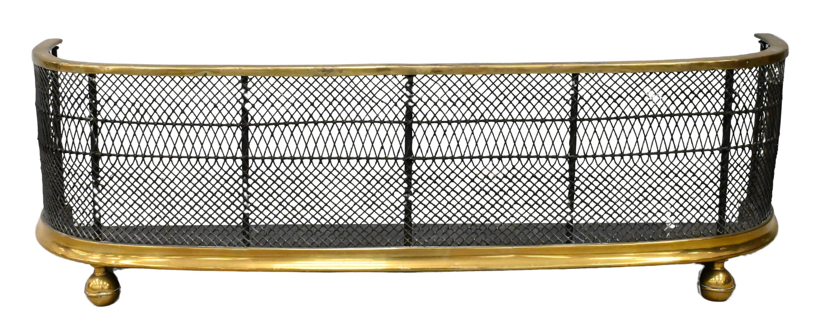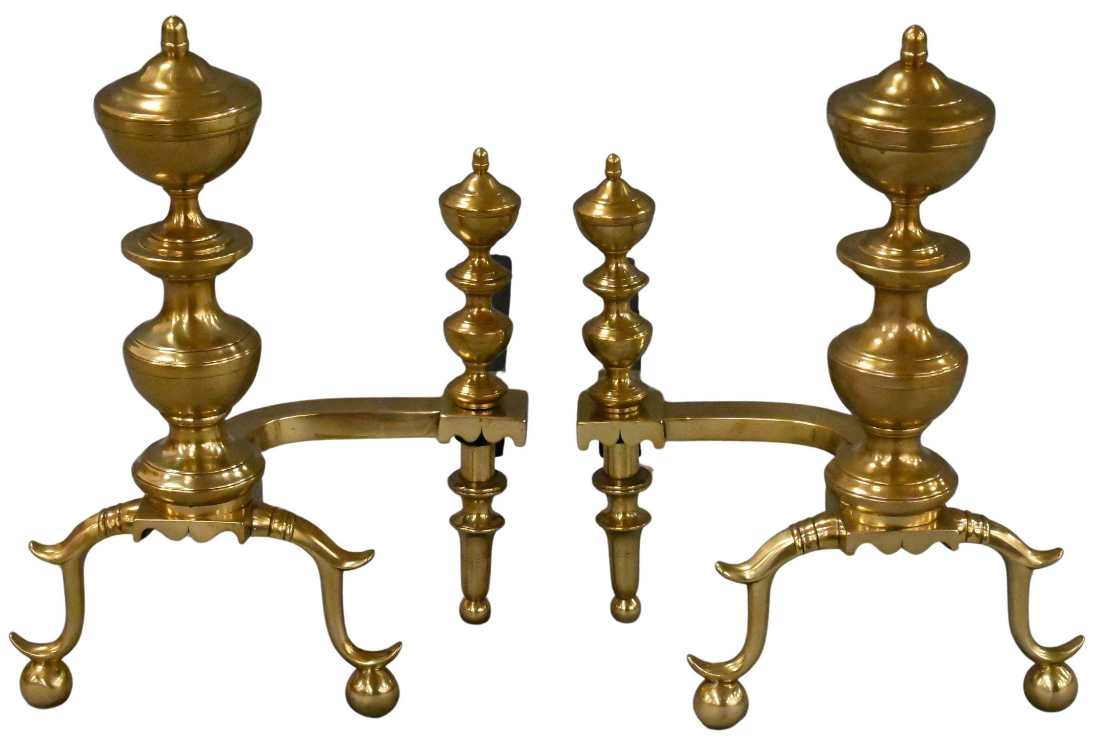 with log stops and matching two piece tool set, etched details to urns of andirons and urns on tools, with modern screen