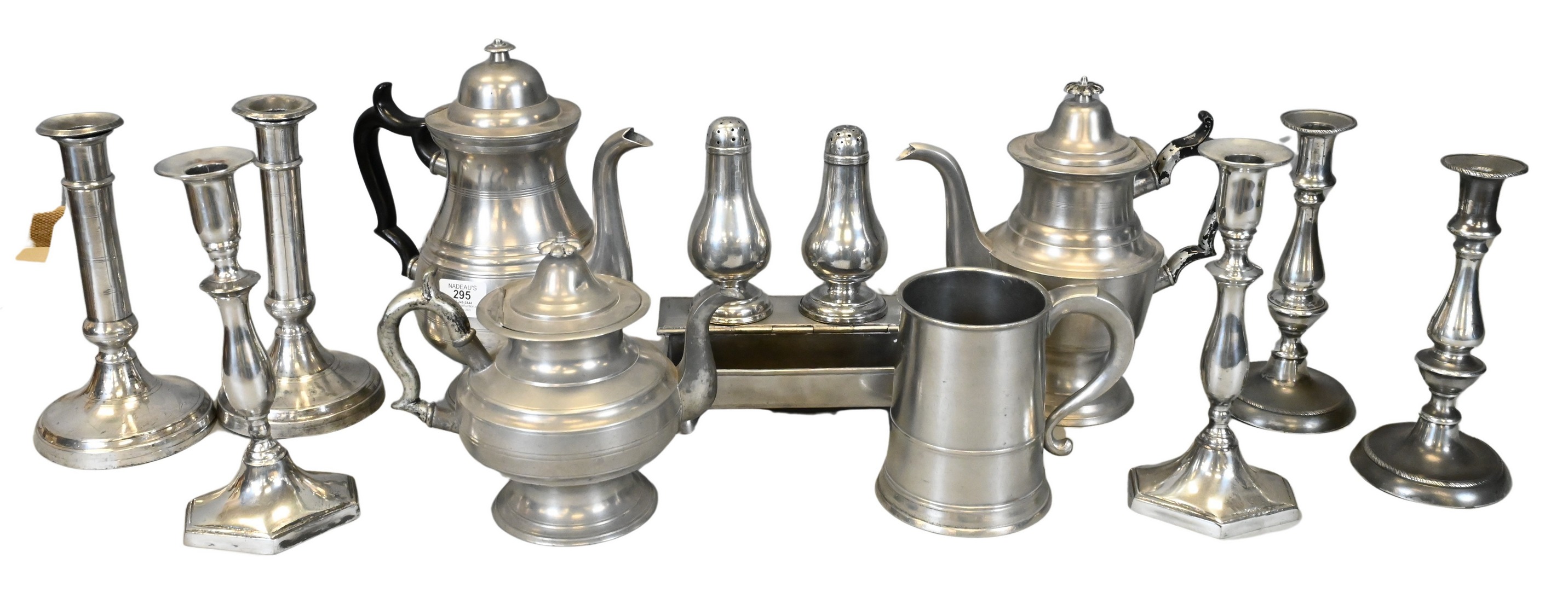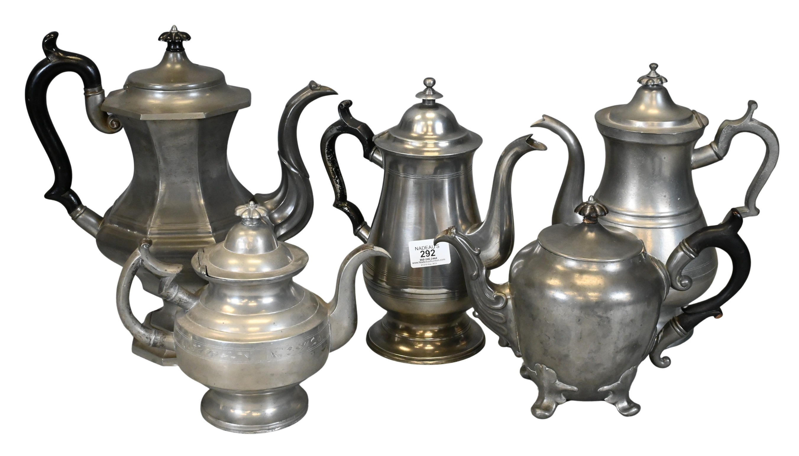 1/2 gill, 1/2 pink, 1 pint, 1/2 gallon, 1 gallon, 2 gallon, and likely 4 gallon, English 19th century