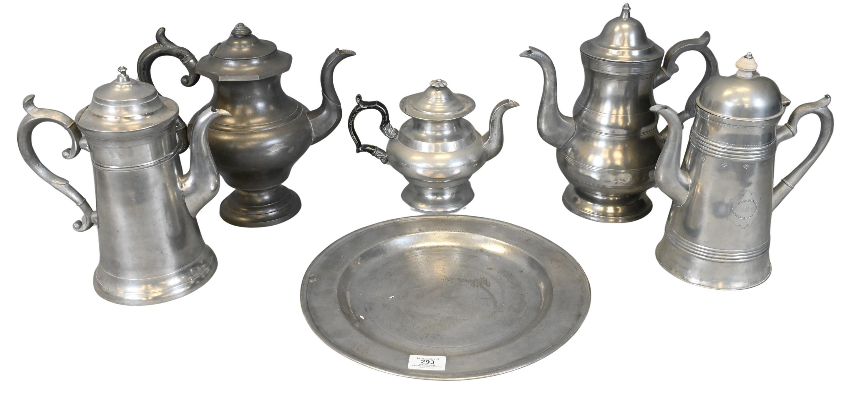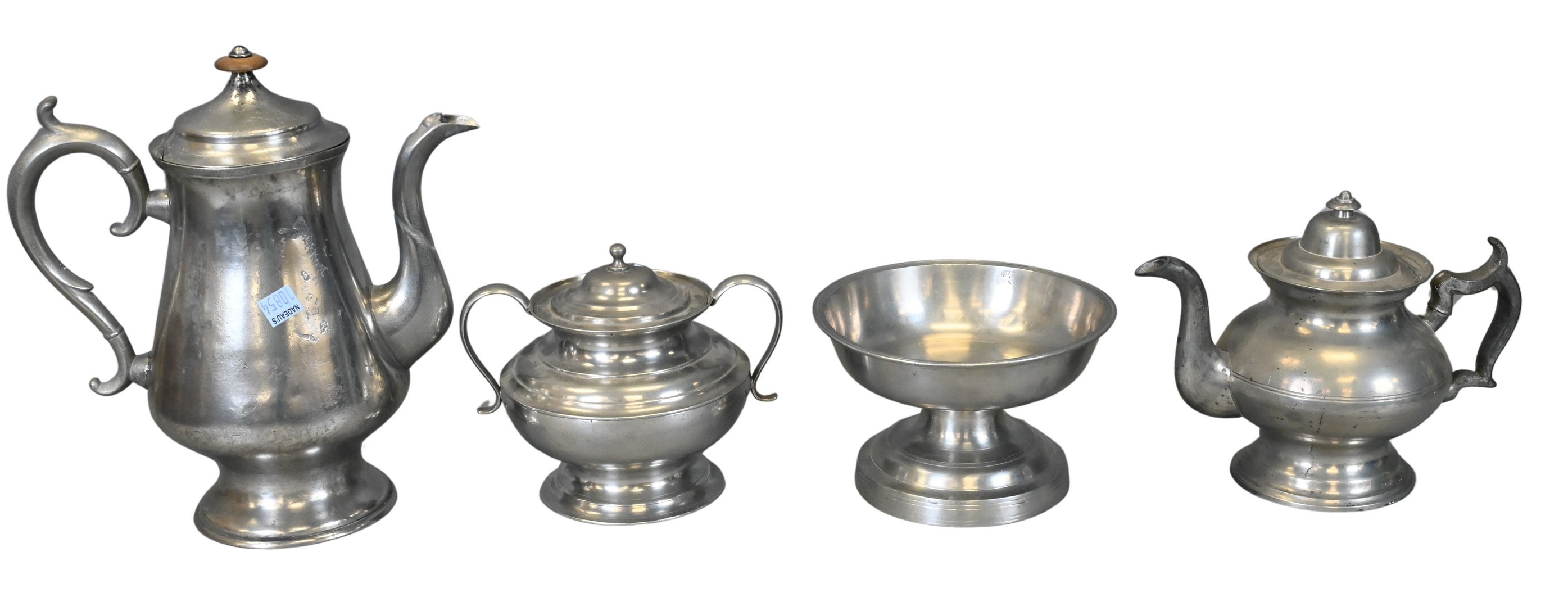 to include Ashbil Griswold Meriden, Connecticut sugar bowl with cover, two Boardman pots, and Tho. Danforth and Samuel Boardman compote