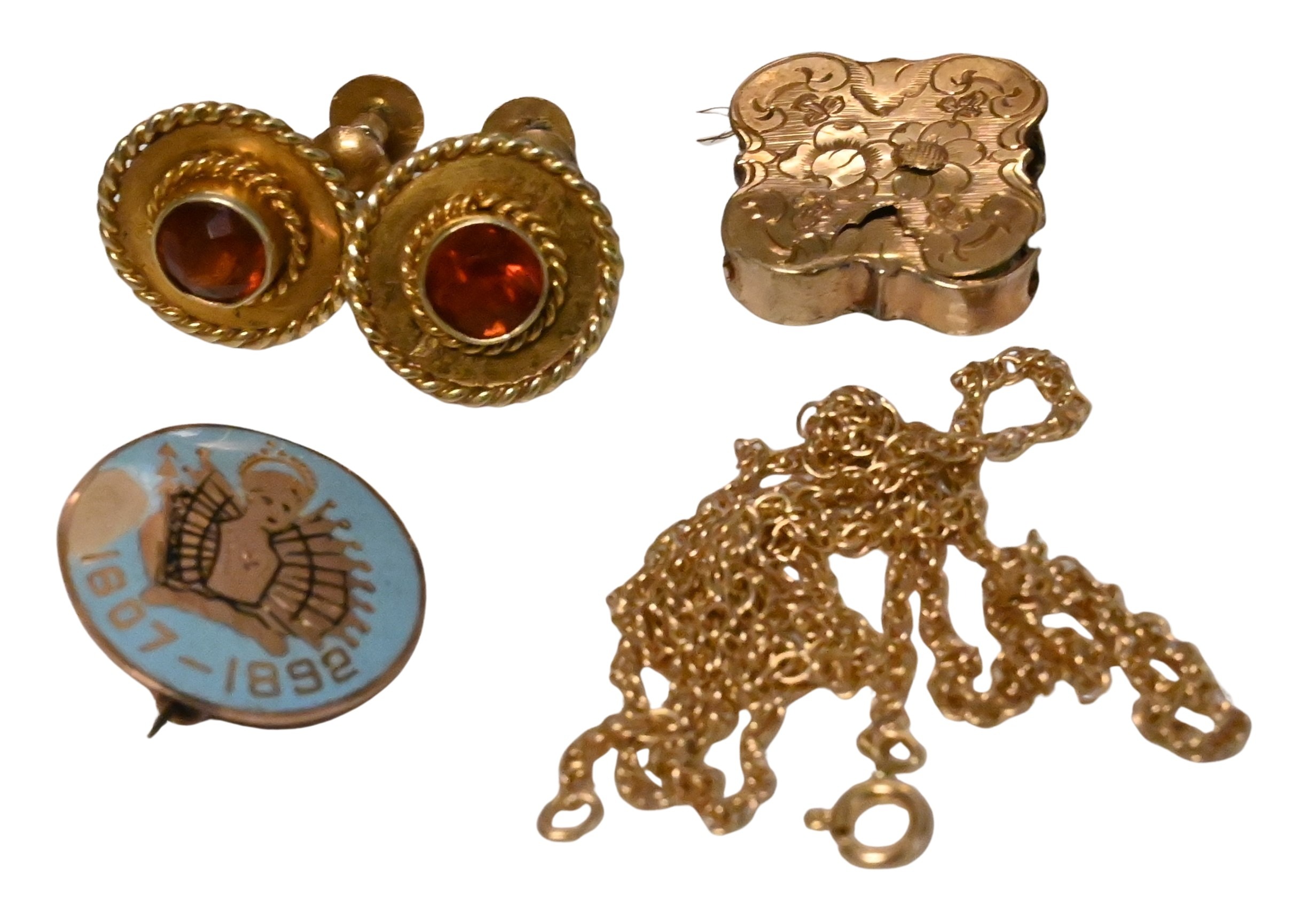 to include pair of earrings, necklace, Victorian pin, and Victorian slide