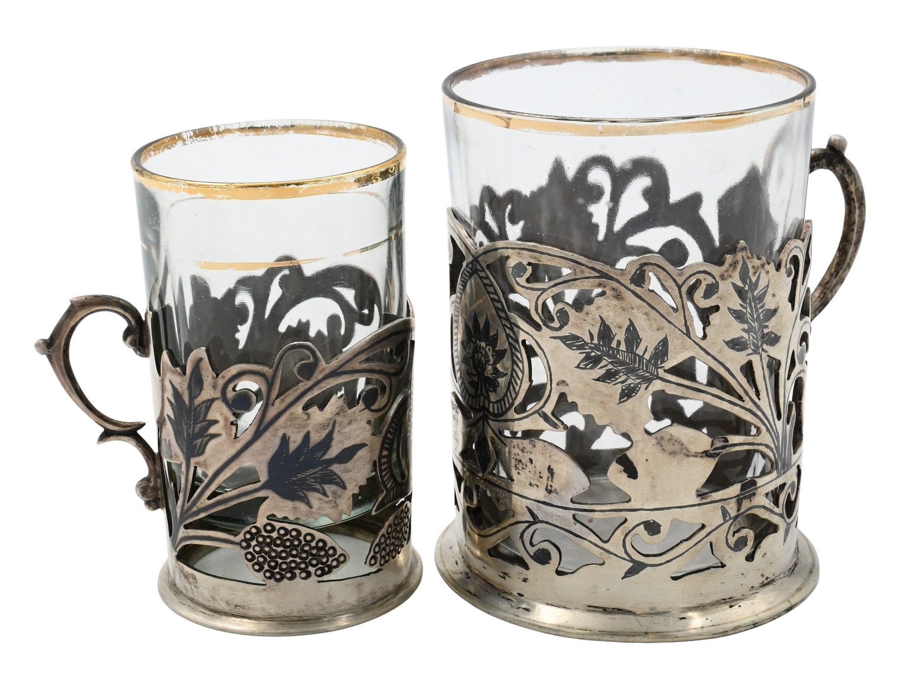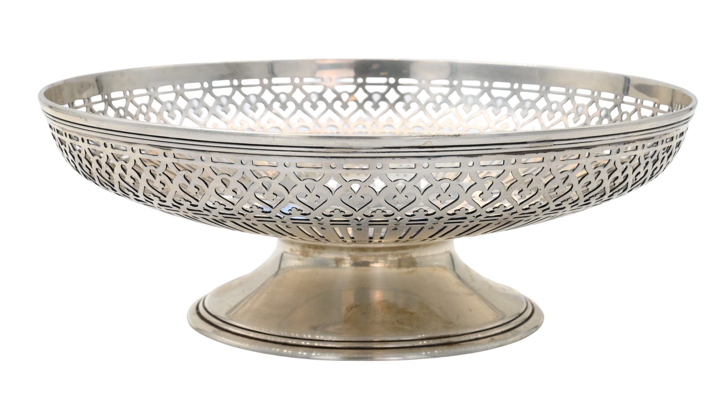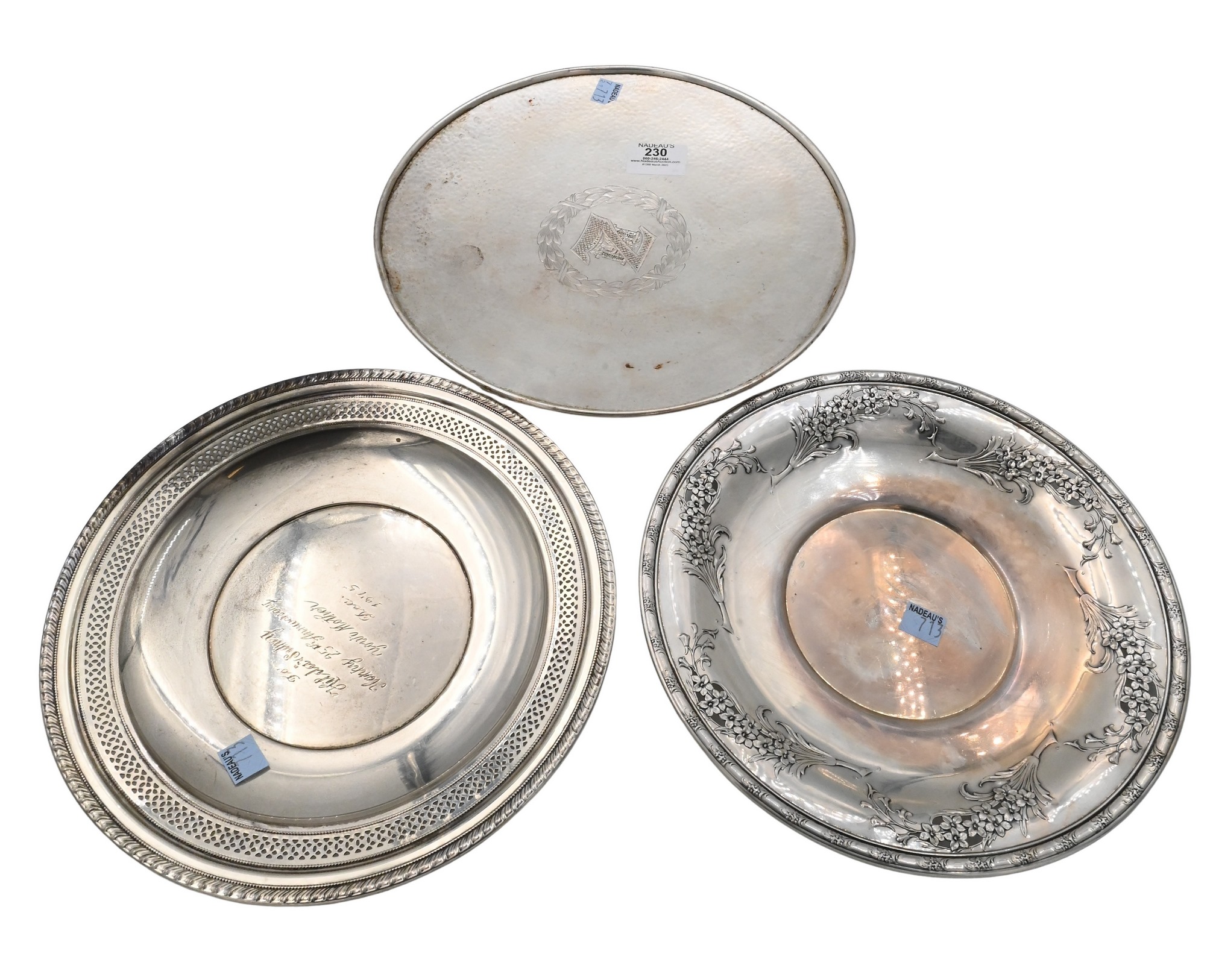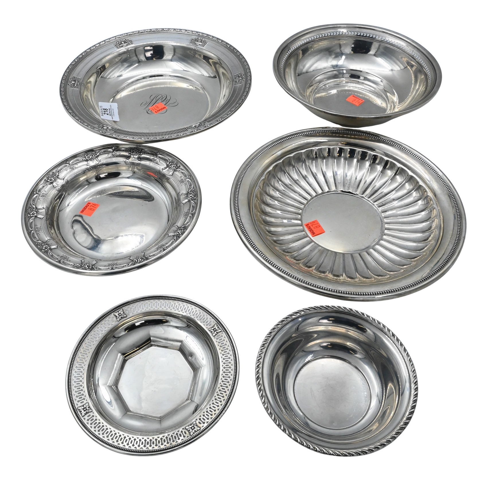 to include two pairs of silver wine coasters, one English pair with cobalt liners marked Howard, along with two small sterling silver dishes
