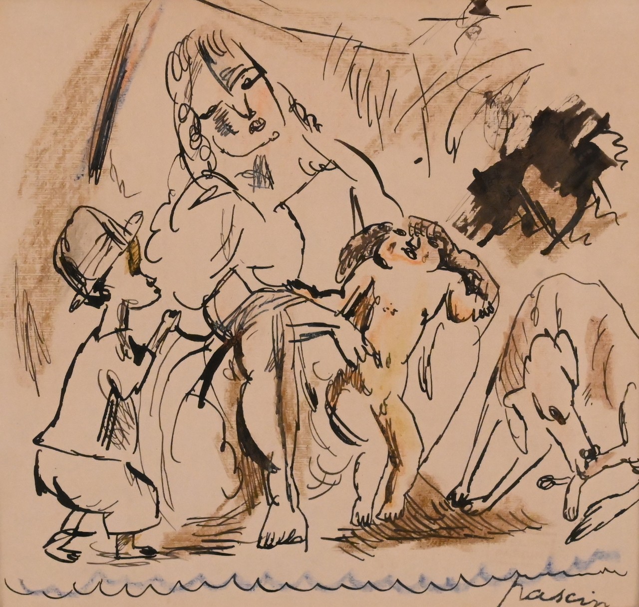 Pen and ink wash on paper
