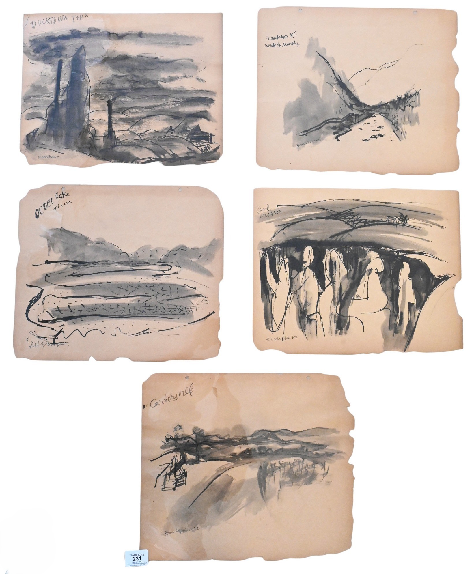 Five: Abraham Rattner (American 1893-1978) Original Landscape Studies