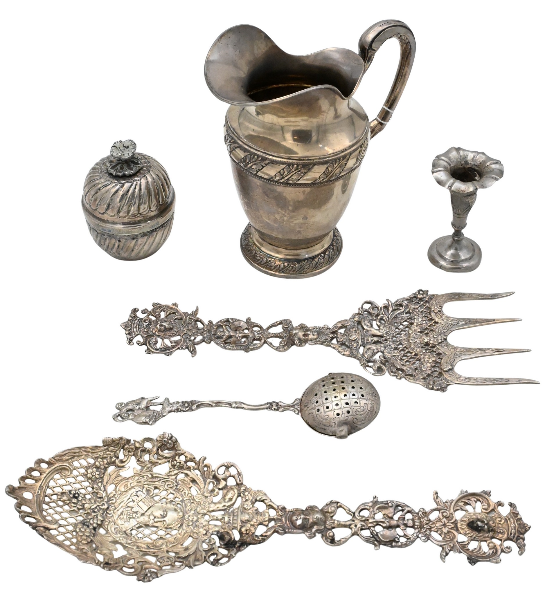 Auction Terms and Conditions: All lots are sold "AS IS" The condition of lots can vary widely and are unlikely to be in a perfect condition. *No credit card payments will be accepted for silver, gold, or jewelry from buyers that have not purchased from our gallery in the past. Condition Reports are available by request and answered in the order they are received starting the week of the sale. Our in house buyer's premium (applies for absentee and phone bidders) is 25% and we offer a 3% discount for cash, check, wire, or Zelle payments. If you are bidding through a third party platform you must make payment through that platform. Our online buyers premium for all third party sites is 30% (there are no discounts offered for 3rd party bidding platforms). Our buyer's premium for our own website is 30%, there is a 3% discount offered for cash, check, Zelle, or Wire payments for buyer's using only our site or who are bidding in house.