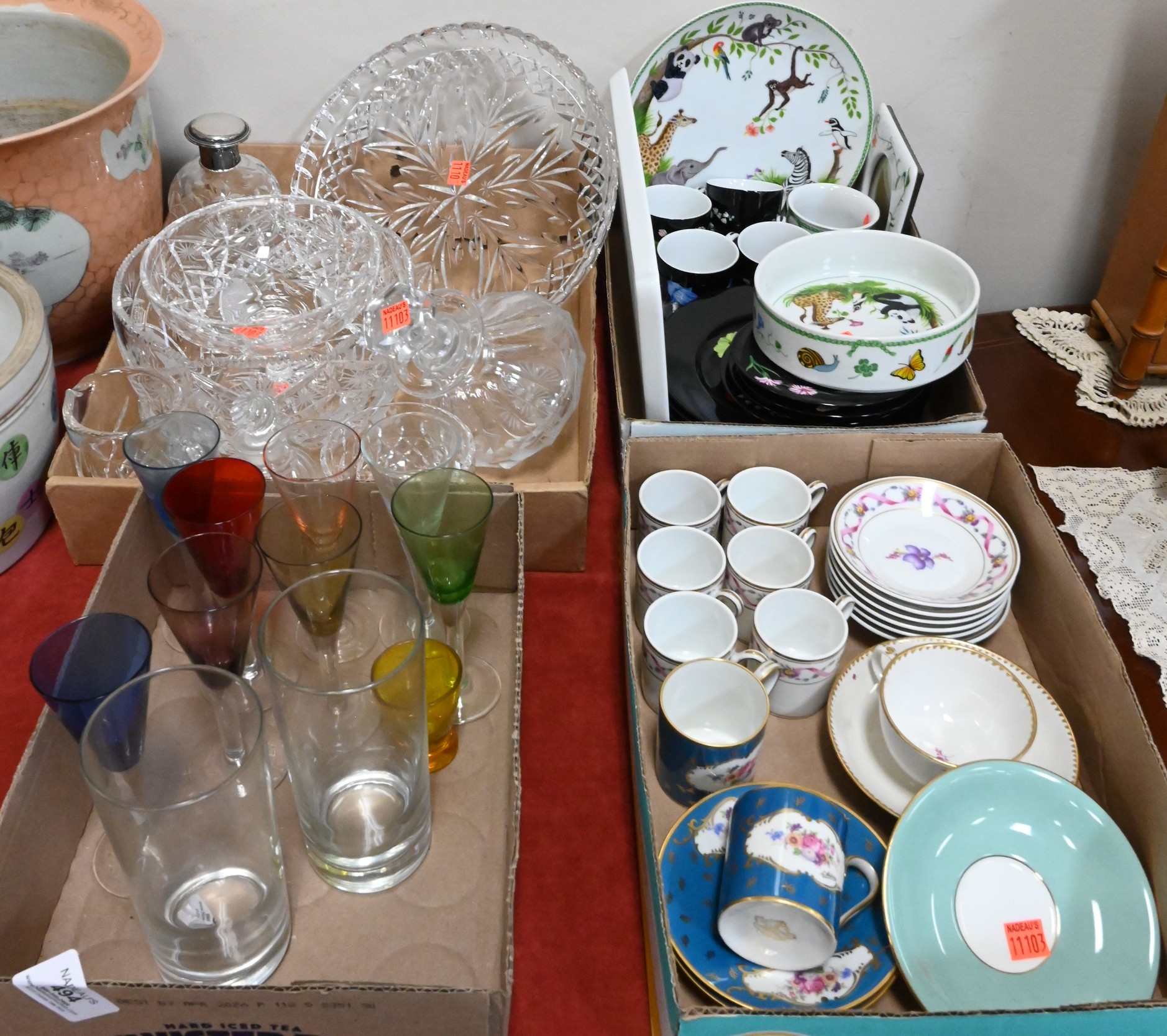 Lynn Chase “Jungle Party” picture frame, cup, plate, Tiffany and Co. “Mrs. Delany’s Flowers” teacups and saucers, Richard Ginori along with cut glass bowls, platters, decanter with silvered lid etc…