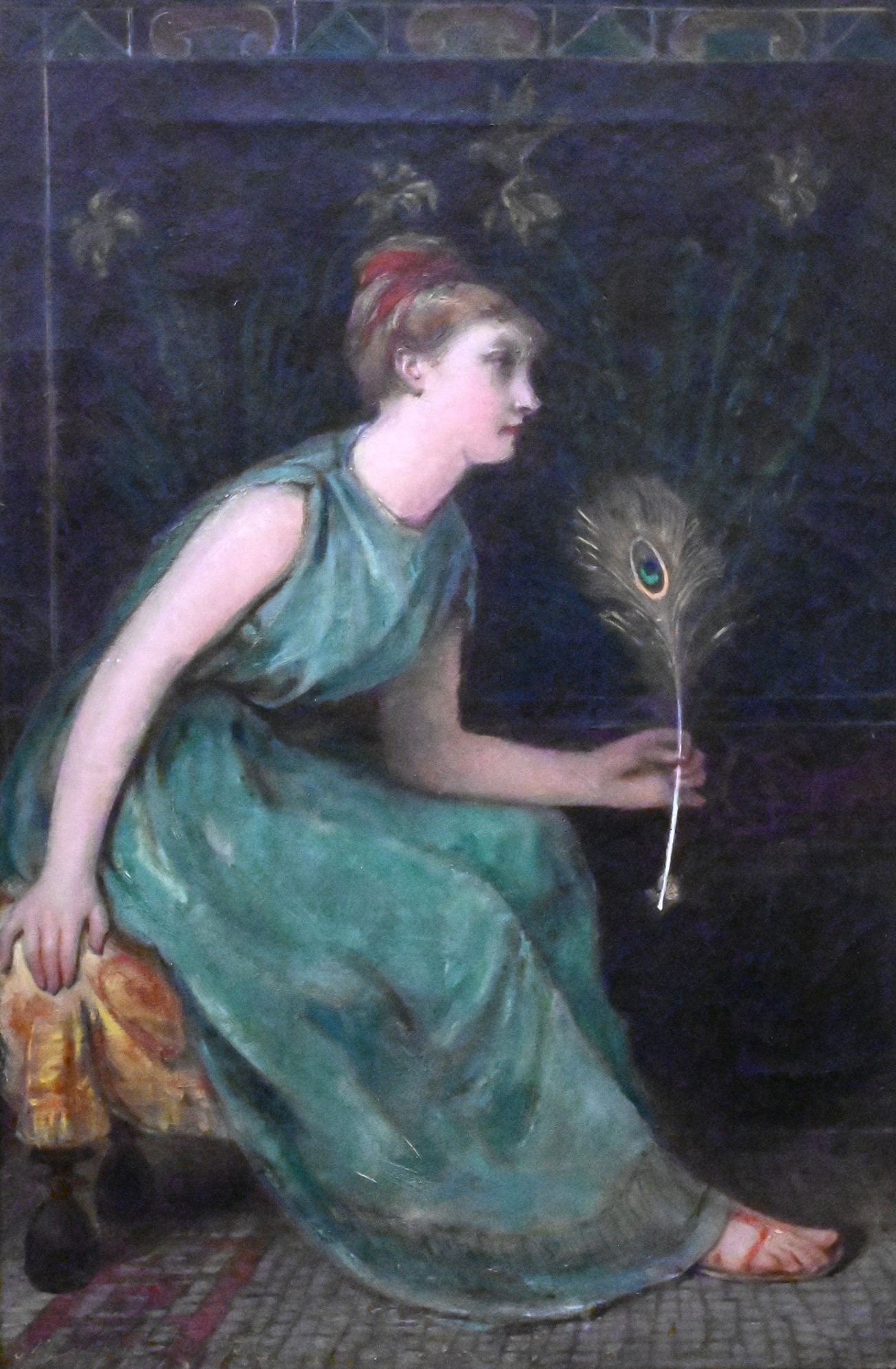 Orientalist or Classical Portrait of a Woman in a Harem Holding a Peacock Feather