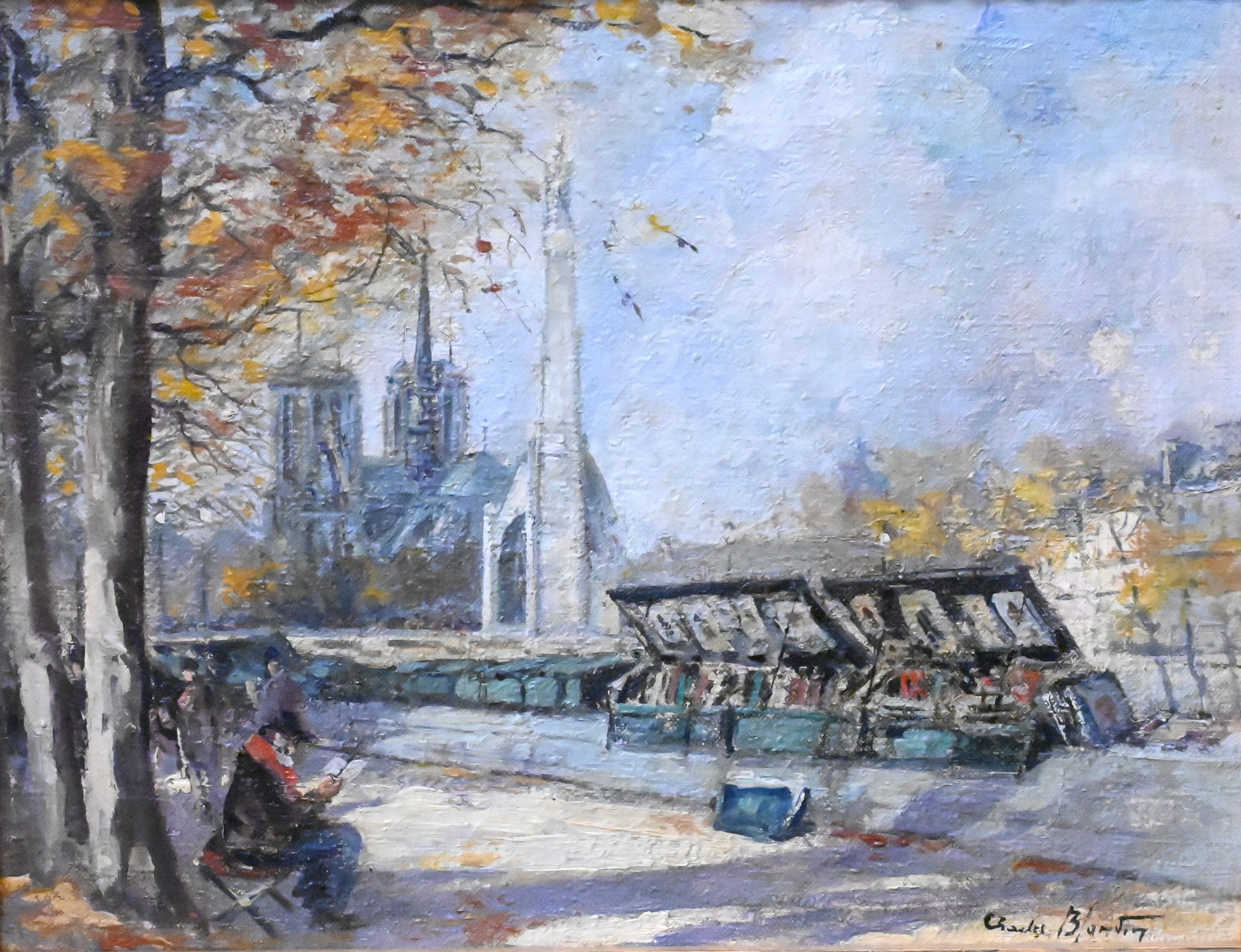 “Quai de la Tournelle et Statue St. Genevieve” View of Notre Dame Cathedral
