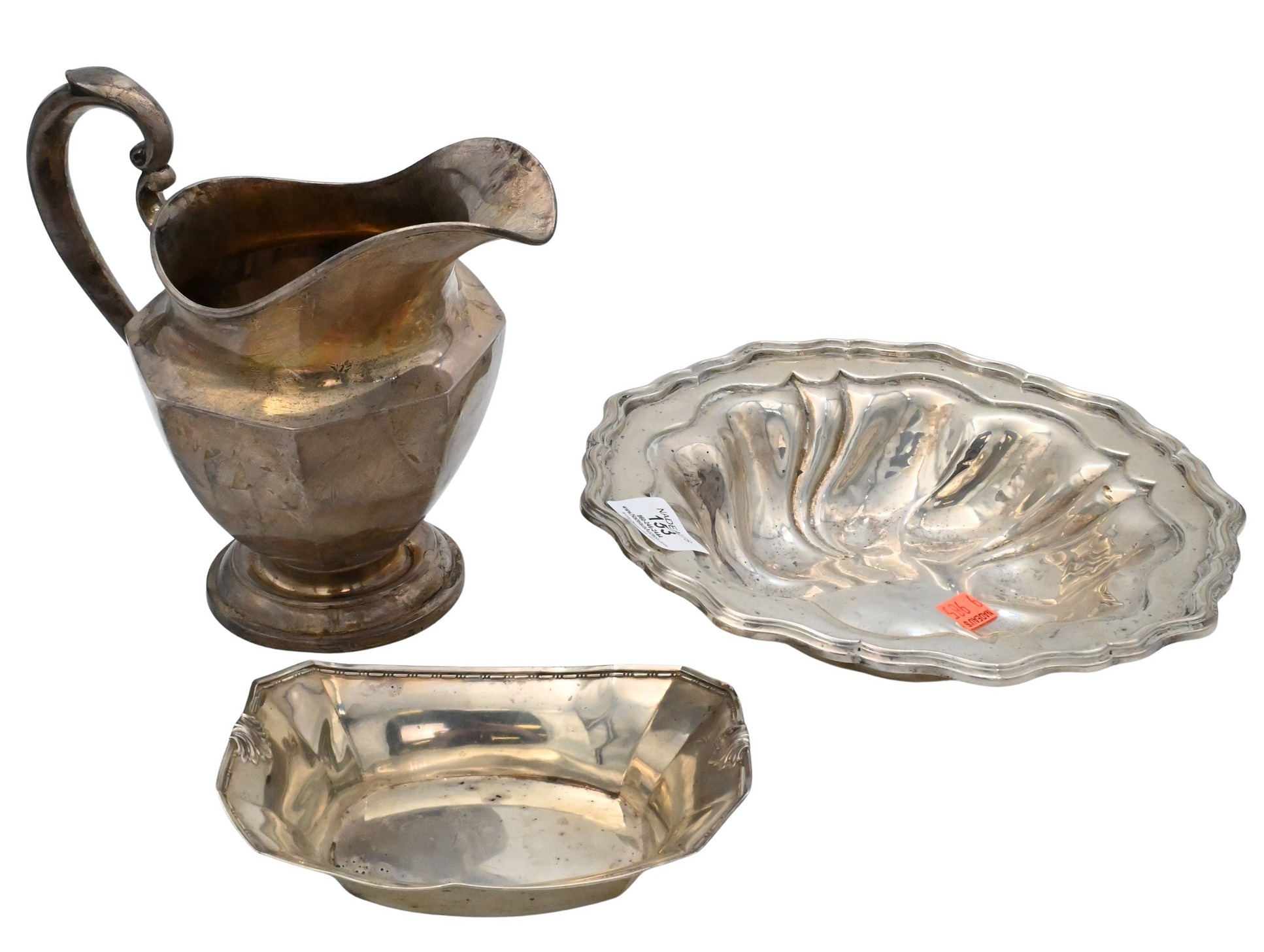 to include pitcher, rectangular nut bowl, and scalloped circular bowl