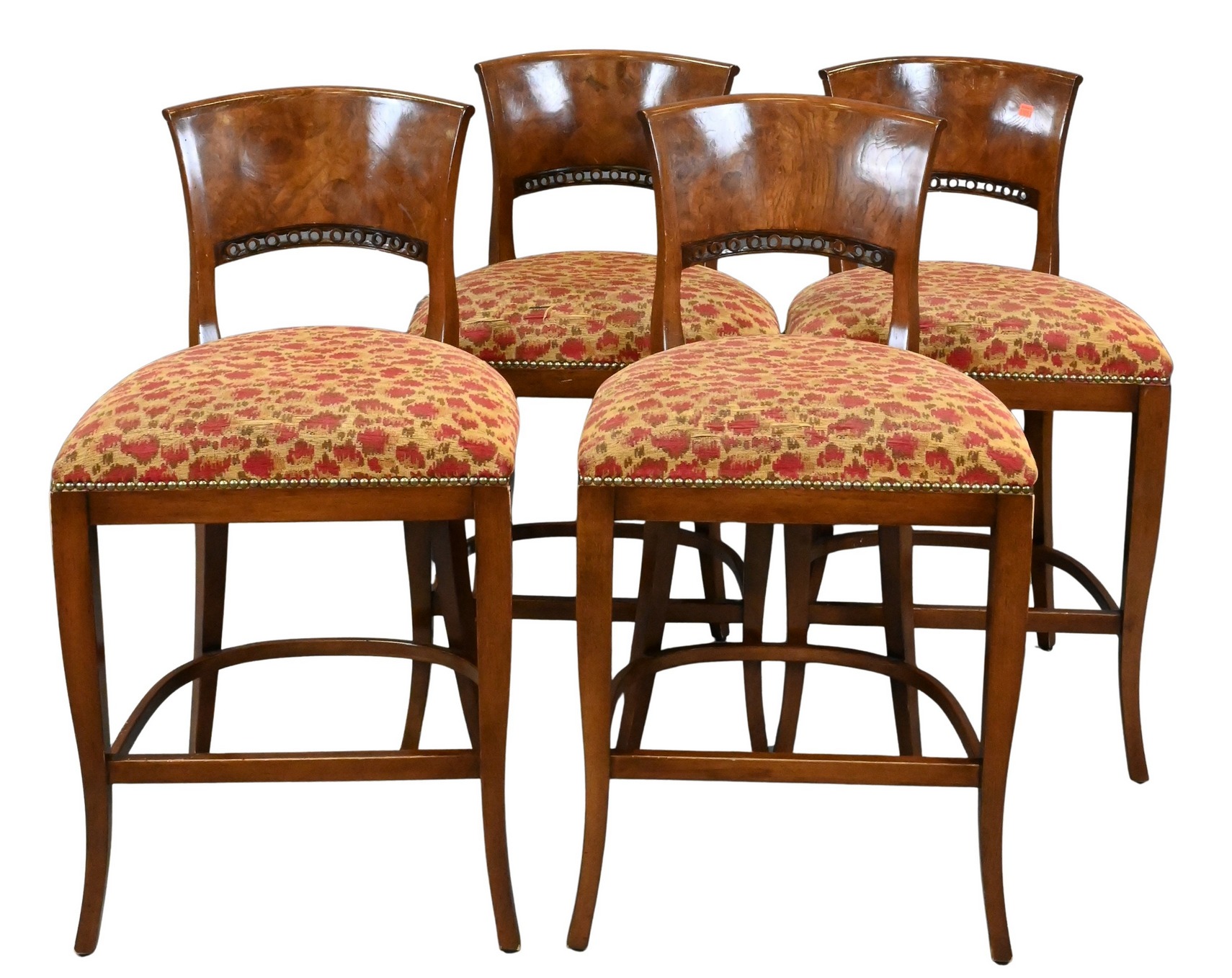 Set of Four Bar Stools having Burlwood Backs
