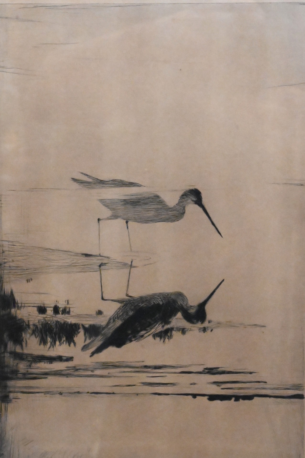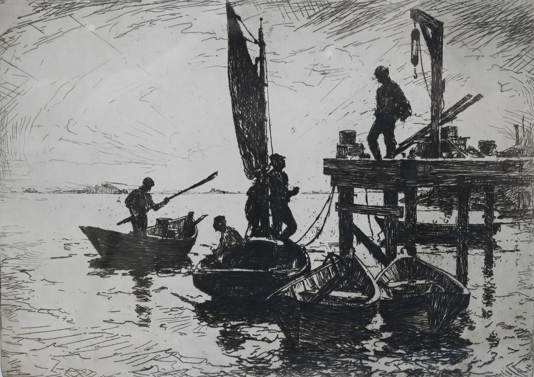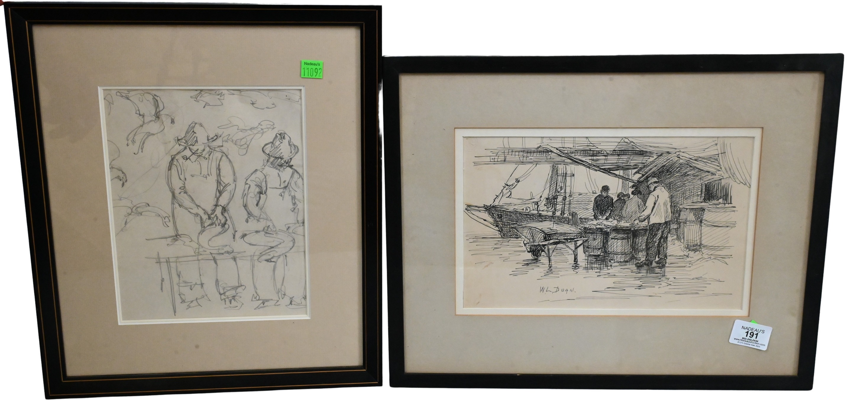 along with additional framed pencil sketch of fisherman cleaning catch