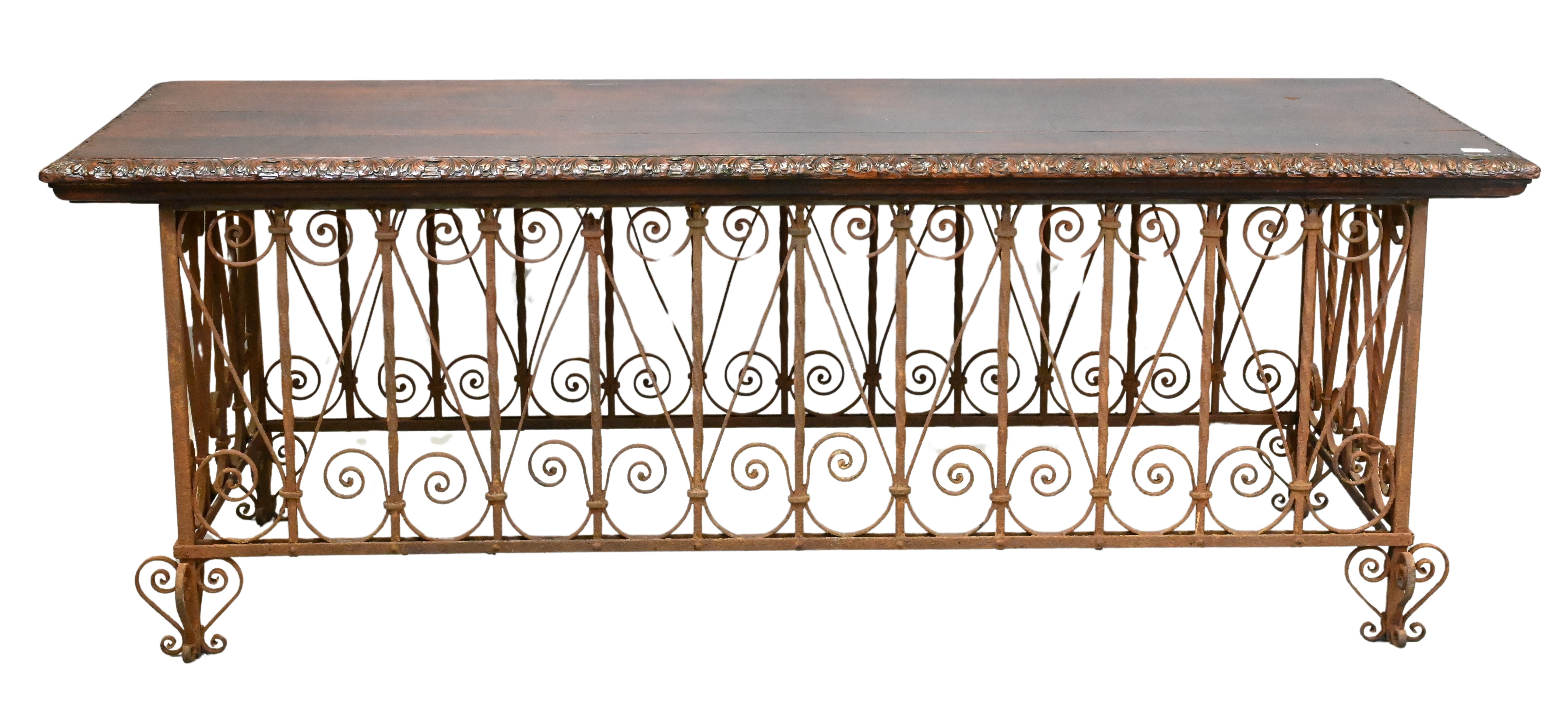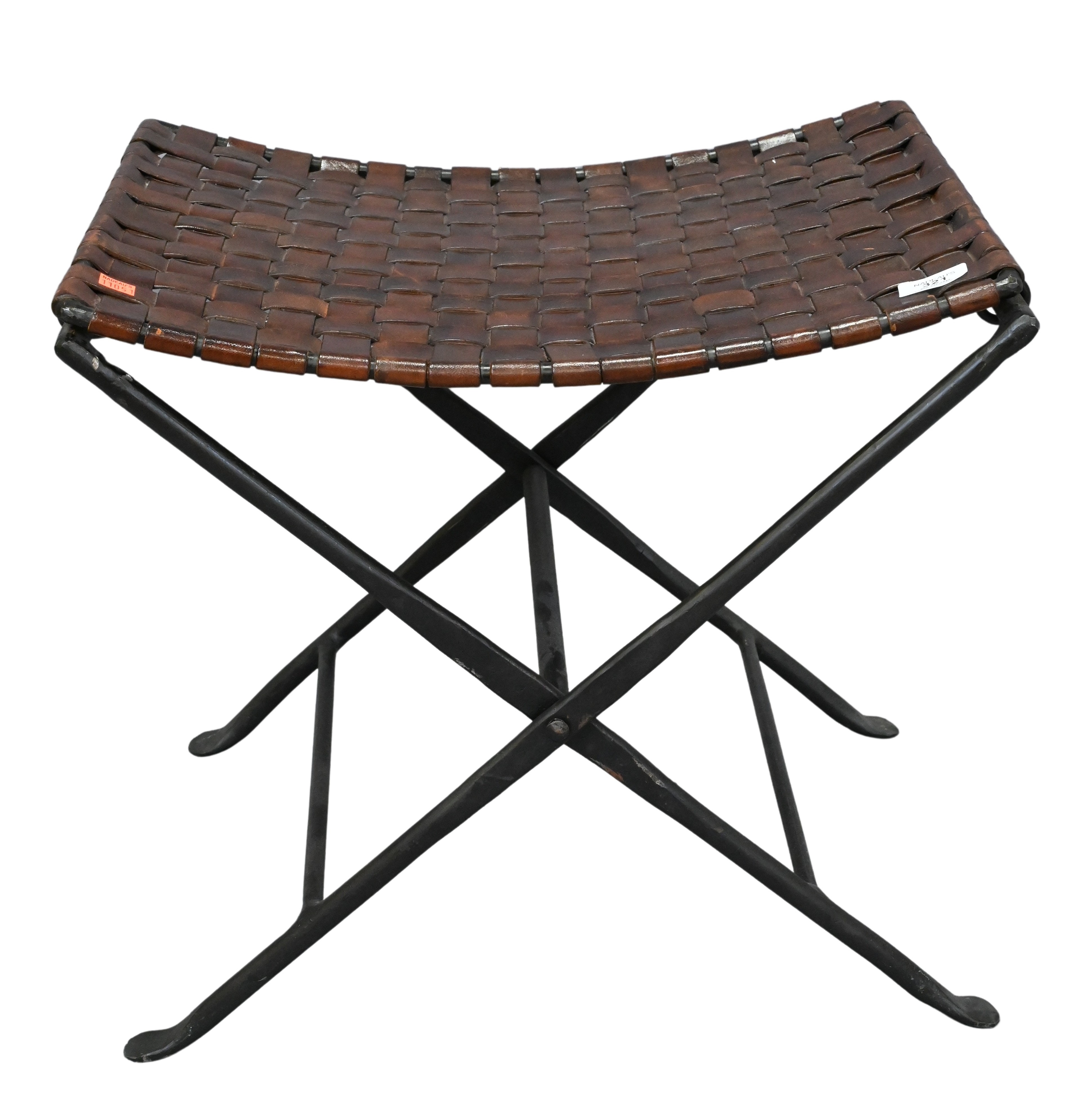 brown leather woven seat over wrought iron stretcher base, India, circa 1980