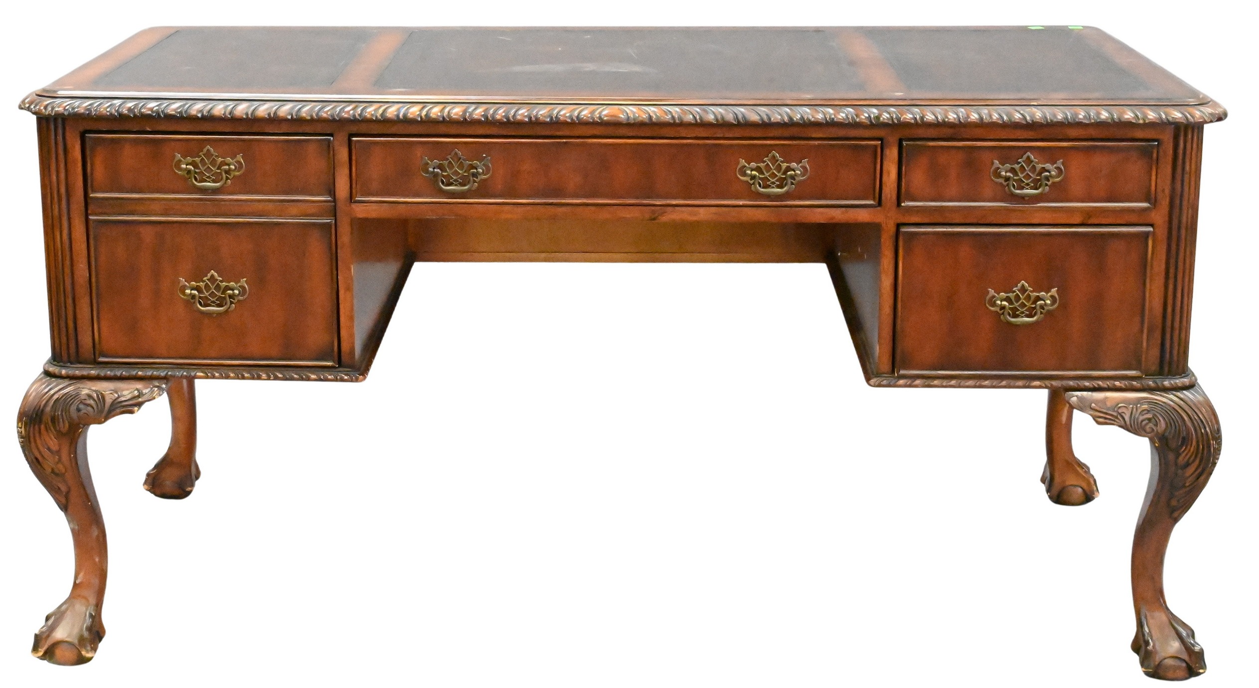 Chippendale Seven Seas Hooker Style Mahogany Leather Top Desk