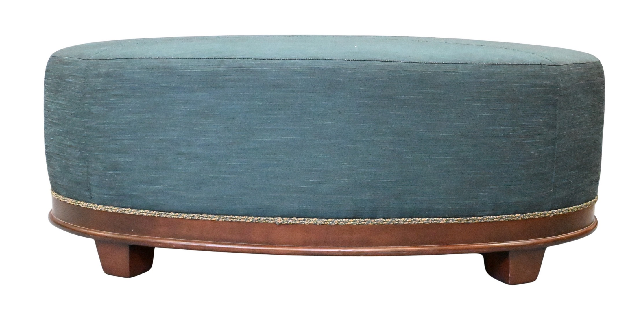 custom striped upholstery, open work back over fluted legs, labeled on underside Ardley Hall, North Carolina