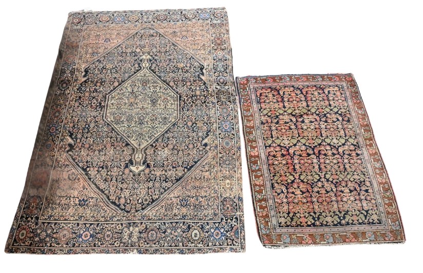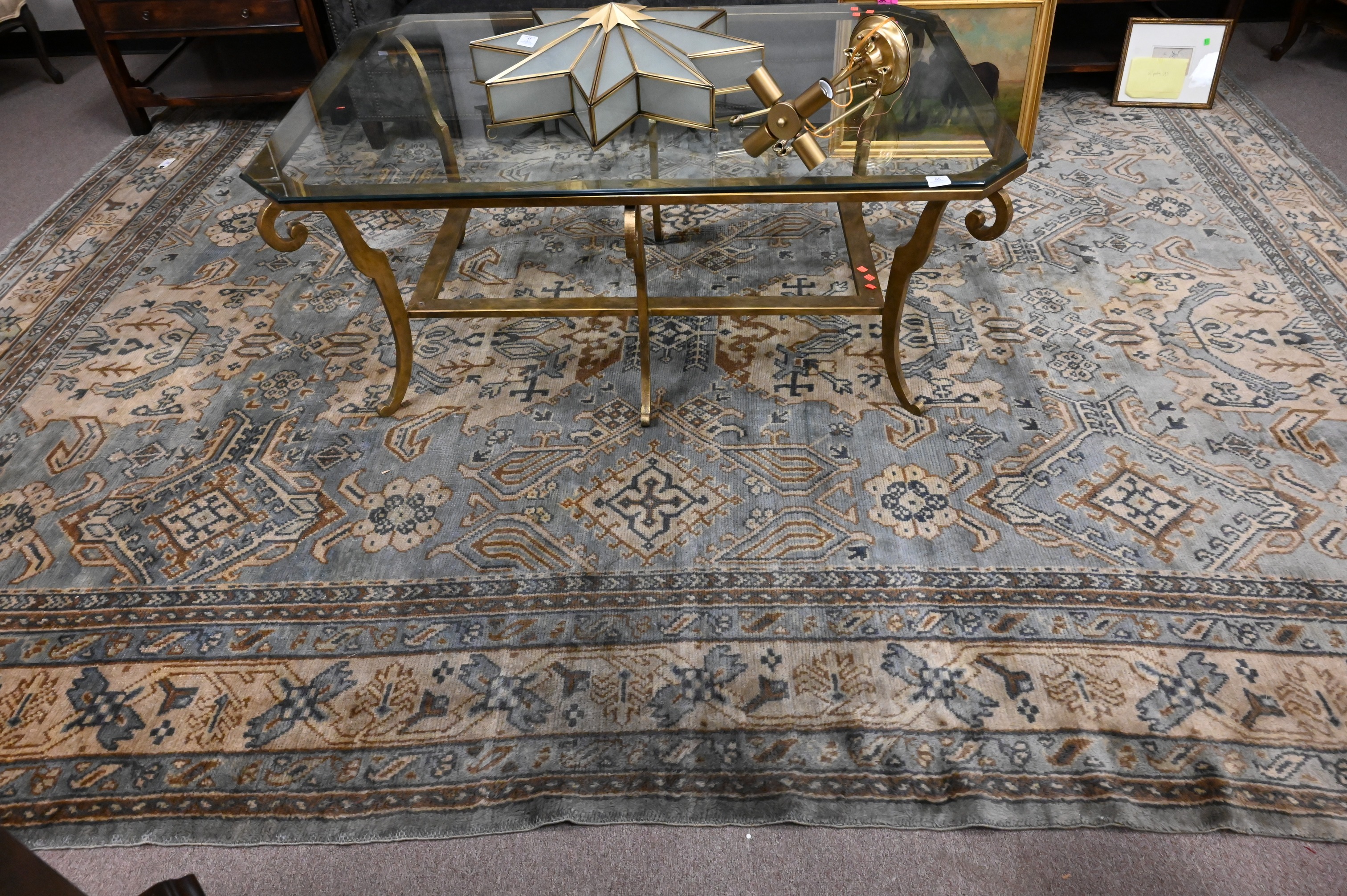 having rope edge and ball and claw feet, along with mahogany coffee table, return missing to one leg of desk