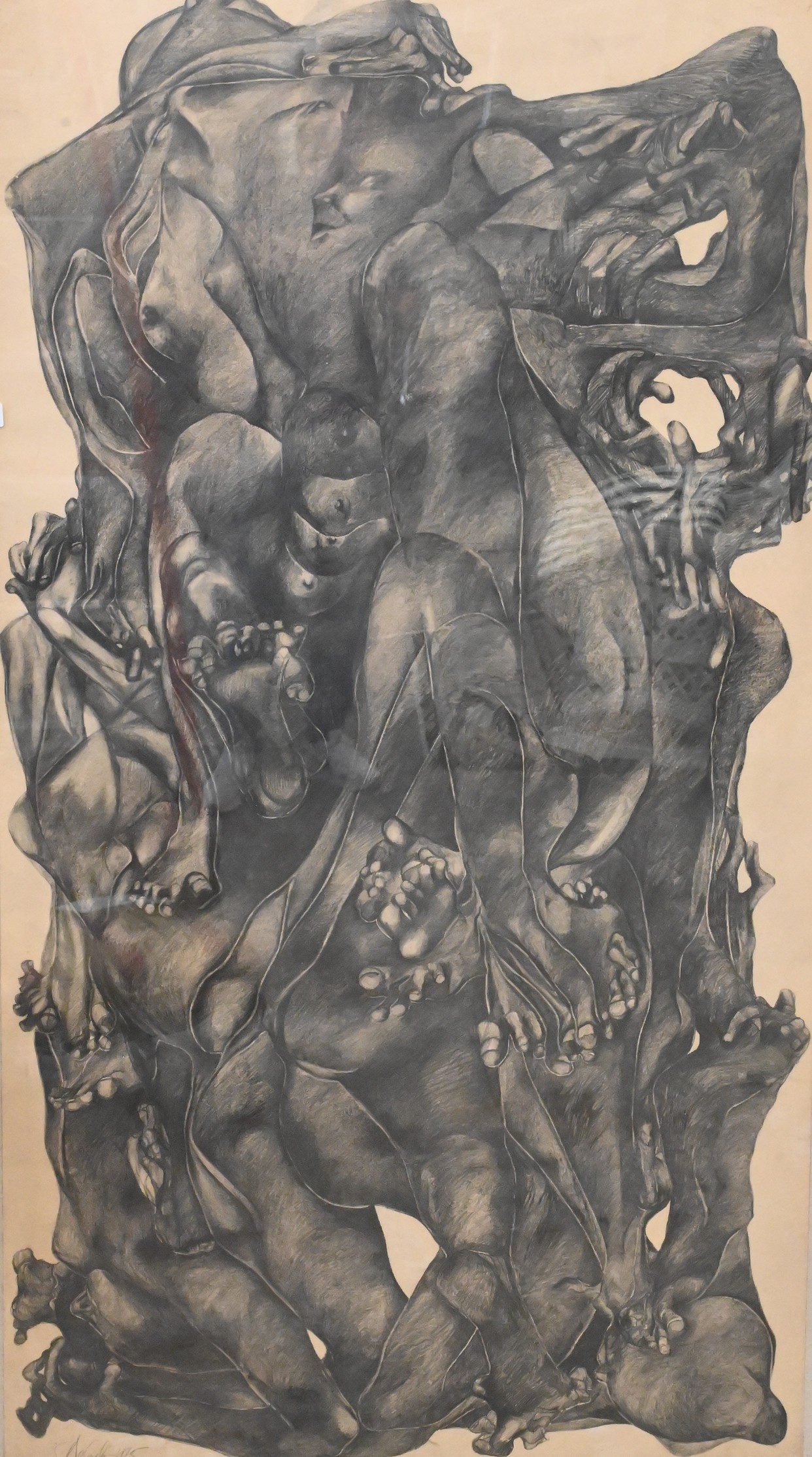 along with three small pastel on paper “Mask Studies” signed and dated C. Mitropoulos 1982