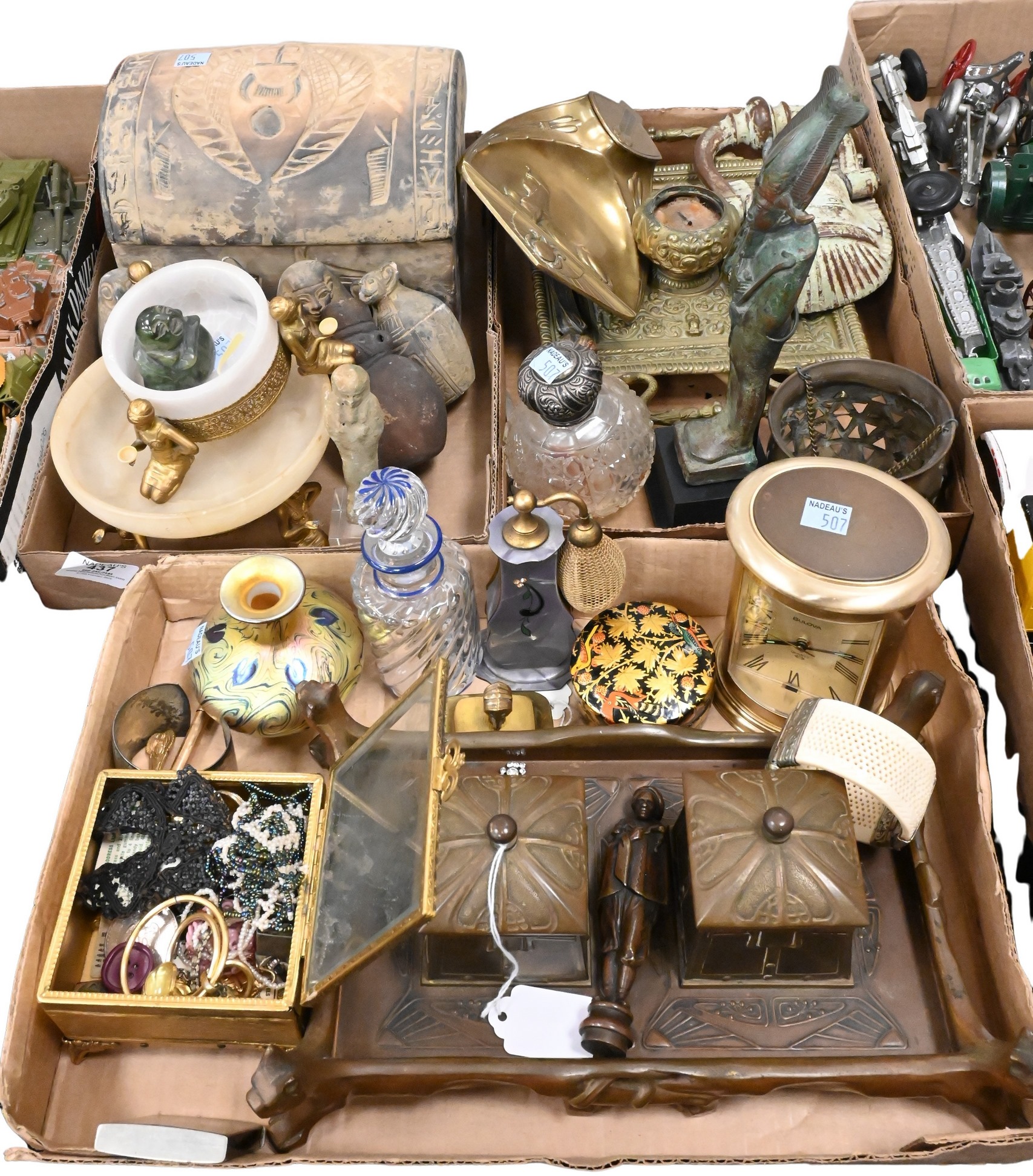 Three Tray Lots of Mostly Egyptian Themed Desktop Items