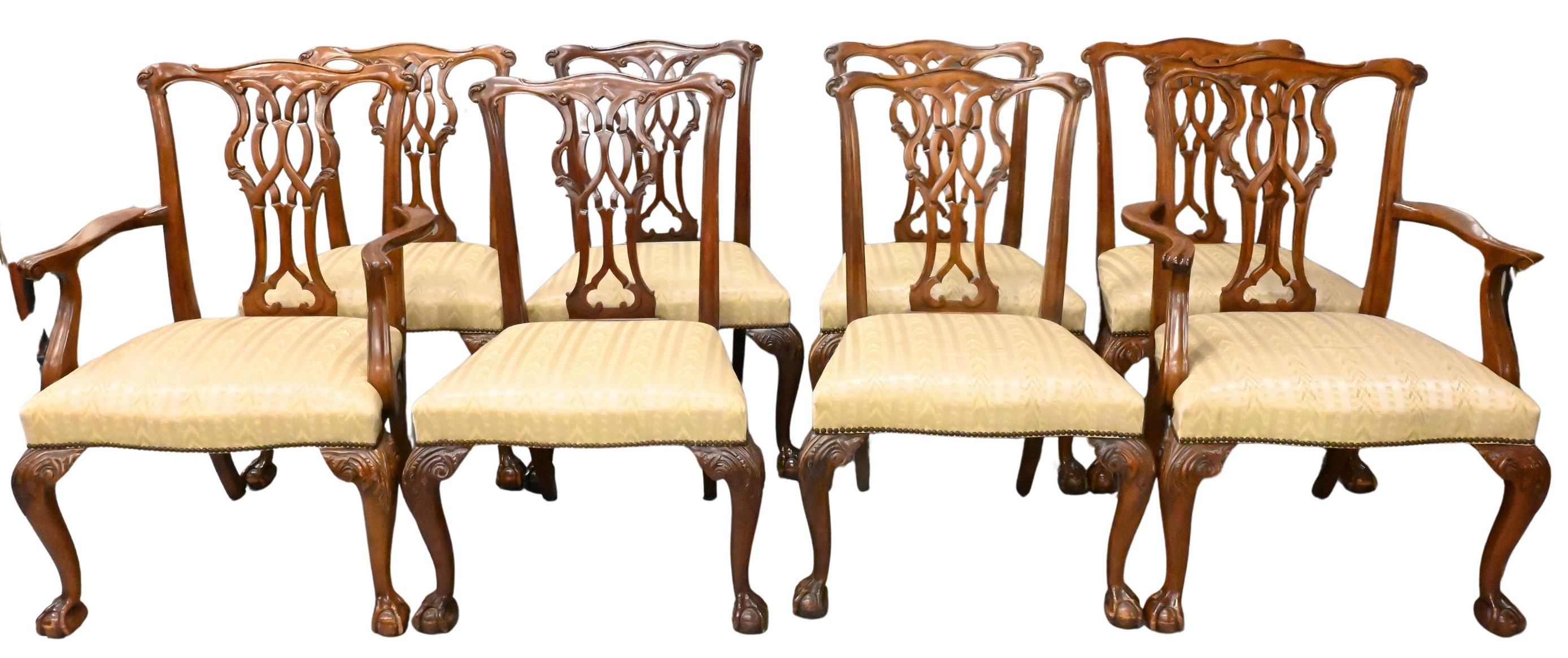 Set of Eight Custom Mahogany Chippendale Style Dining Chairs