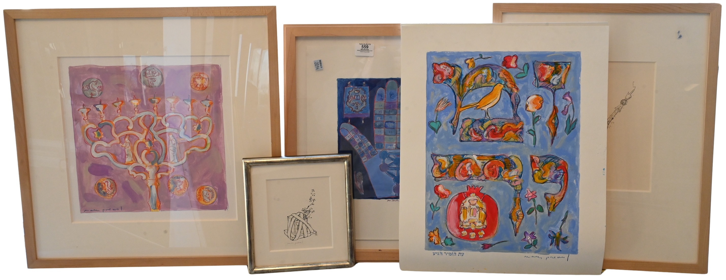 Eight Framed Hebrew / Jewish Art Pieces
